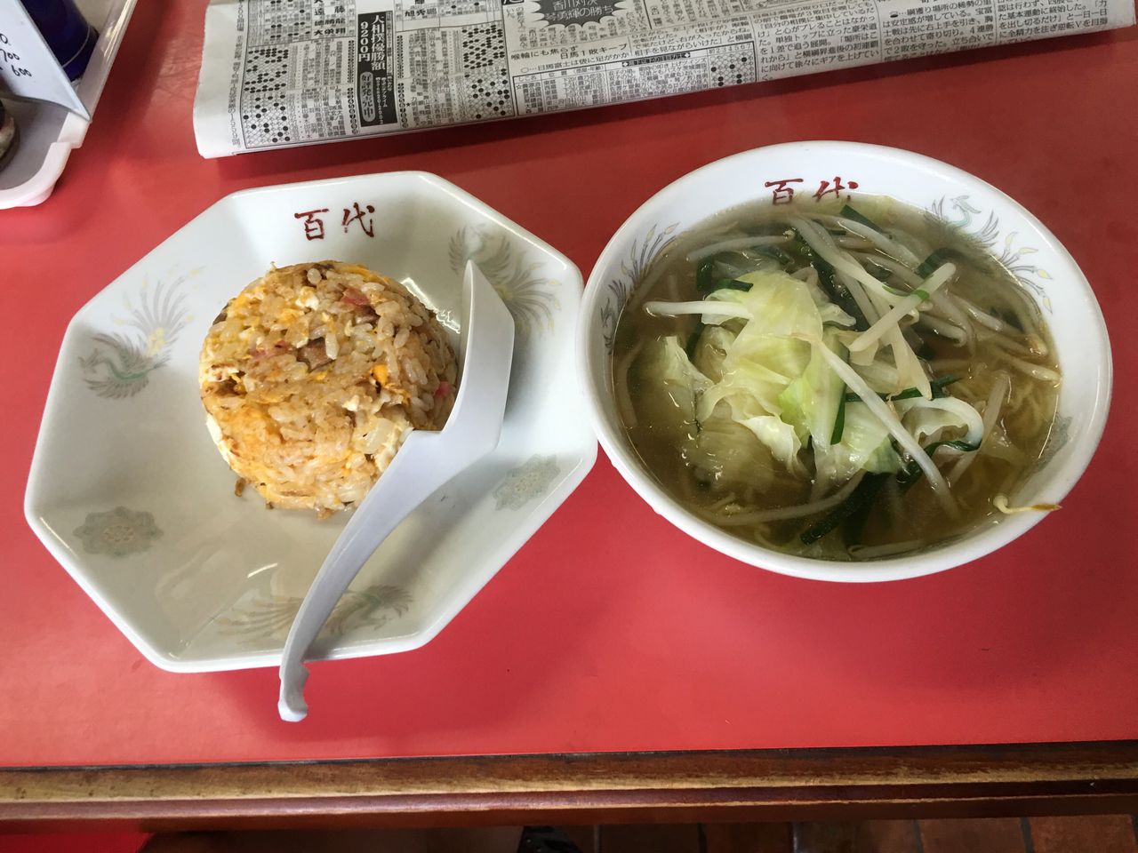 チャーハンを蓮華で口に放り込み、追いかけてスープをすする。チャーハンと麺を同時に咀嚼。チャーハンに野菜、チャーハンに…。