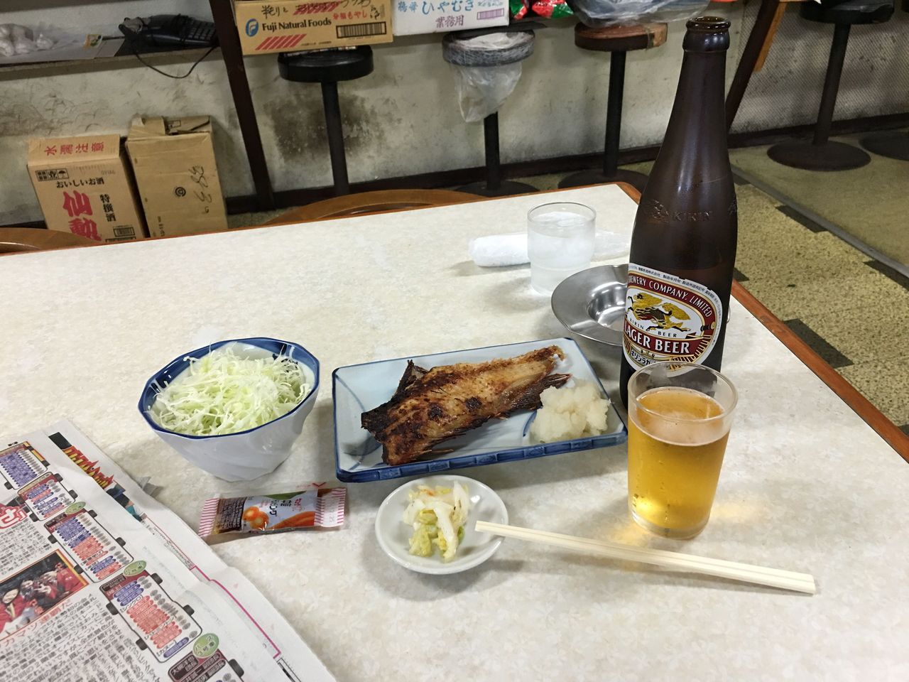 あこうだい焼魚を単品でお願いします。当然ビールもつけていただきます。