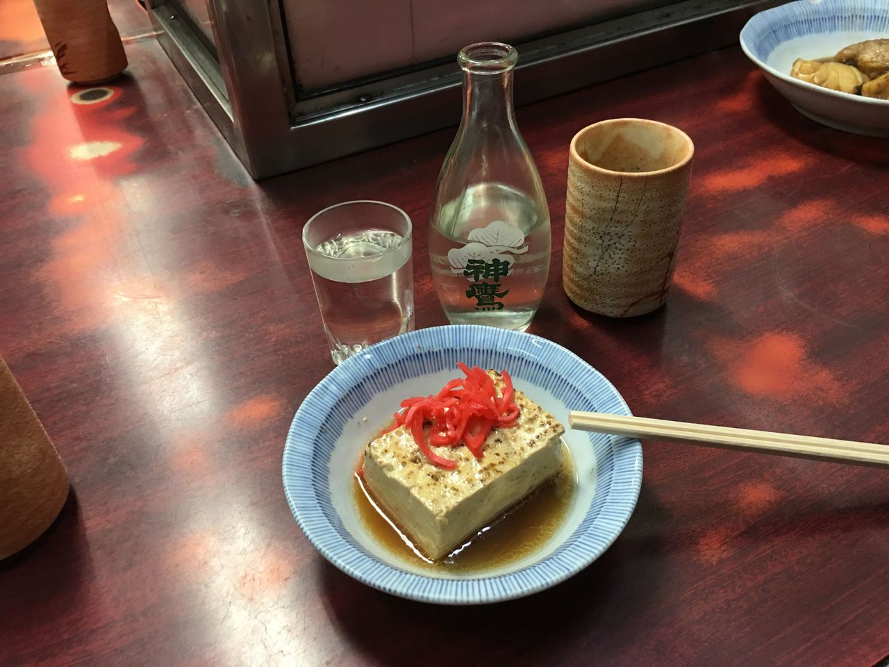 「熱燗と豆腐ください!」っと声をかけると、「うちは食事を取る人ばっかりだから、これ一本にしてくれよな!」っと旦那さんに声をかけられてしまう…。