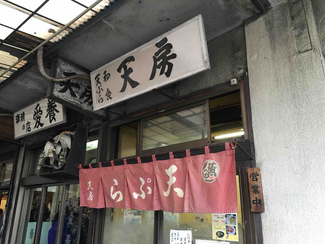 愛養さんを出まして、久しぶりに天房さんの暖簾がかかっているのを見ます。