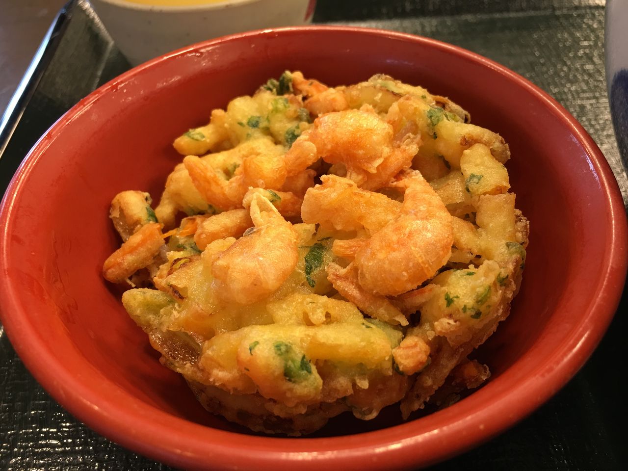 カタカナの名前には伝わらないだろうと思い、かき揚げの入った椀を掲げ厨房に向かって、