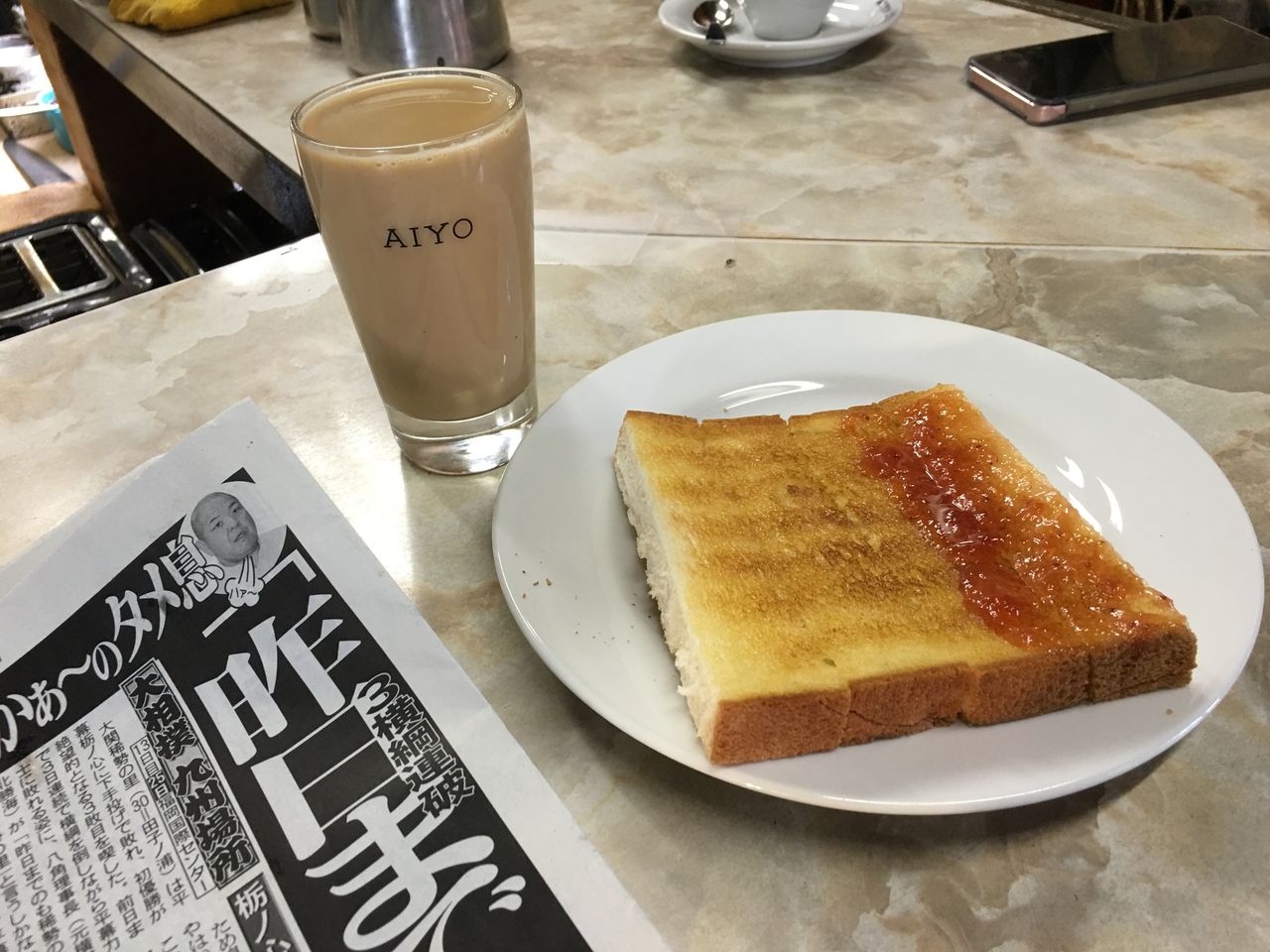 トースト (岡田バージョン)、アイスミルクコーヒー@愛養