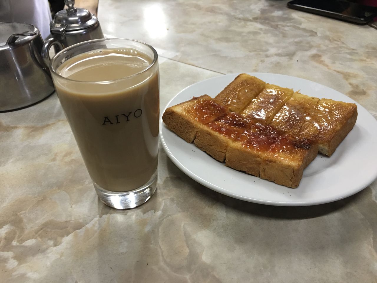 トースト(耳二つ落としジャムちょい乗せ)、ミルクコーヒー@愛養