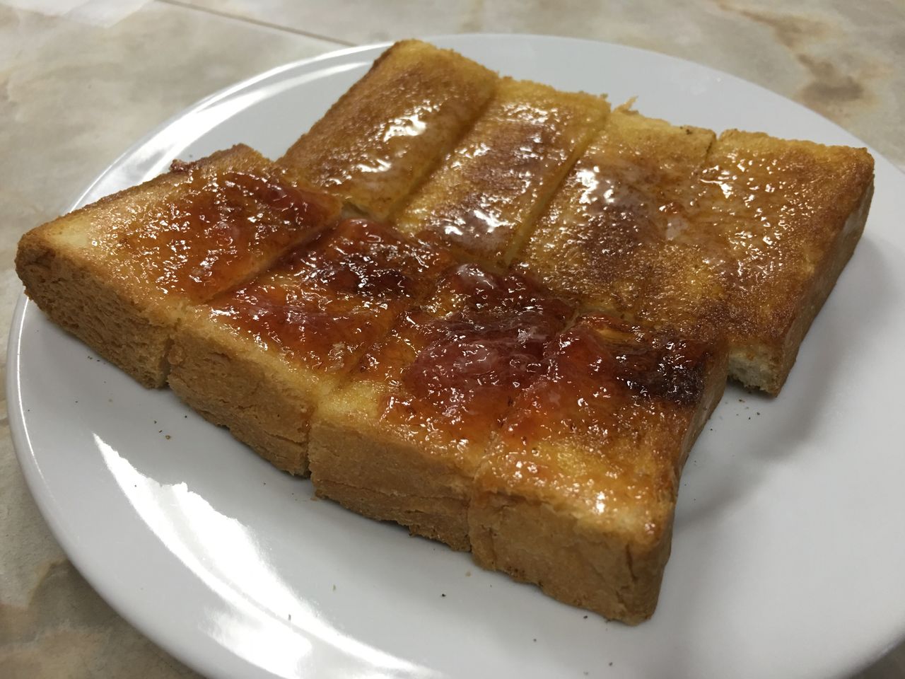 トースト八つ切り、バターとジャムを半分づつ塗っていただきます。