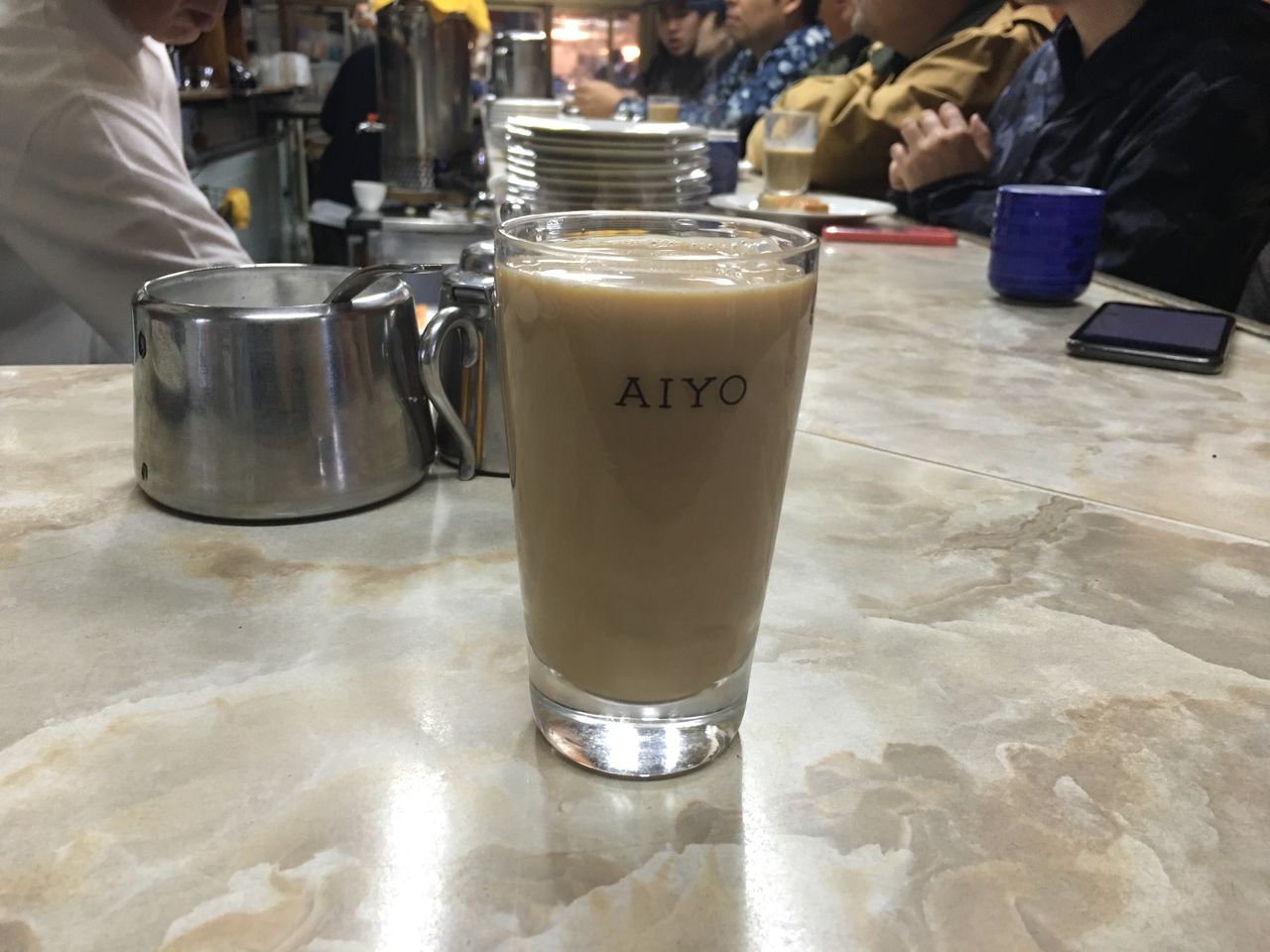 席を譲ってもらってなんとかカウンターにつきミルクコーヒーをお願いします。