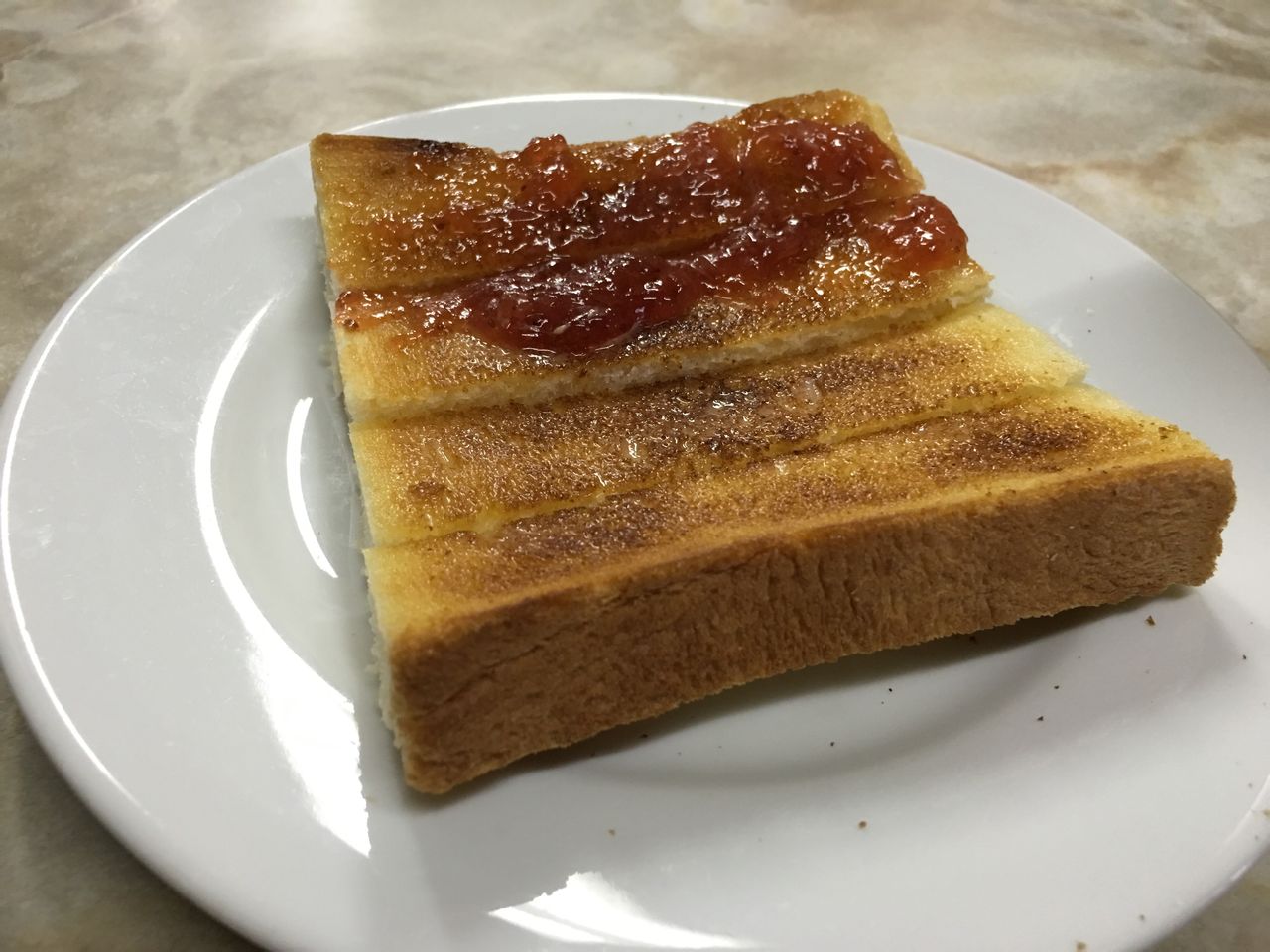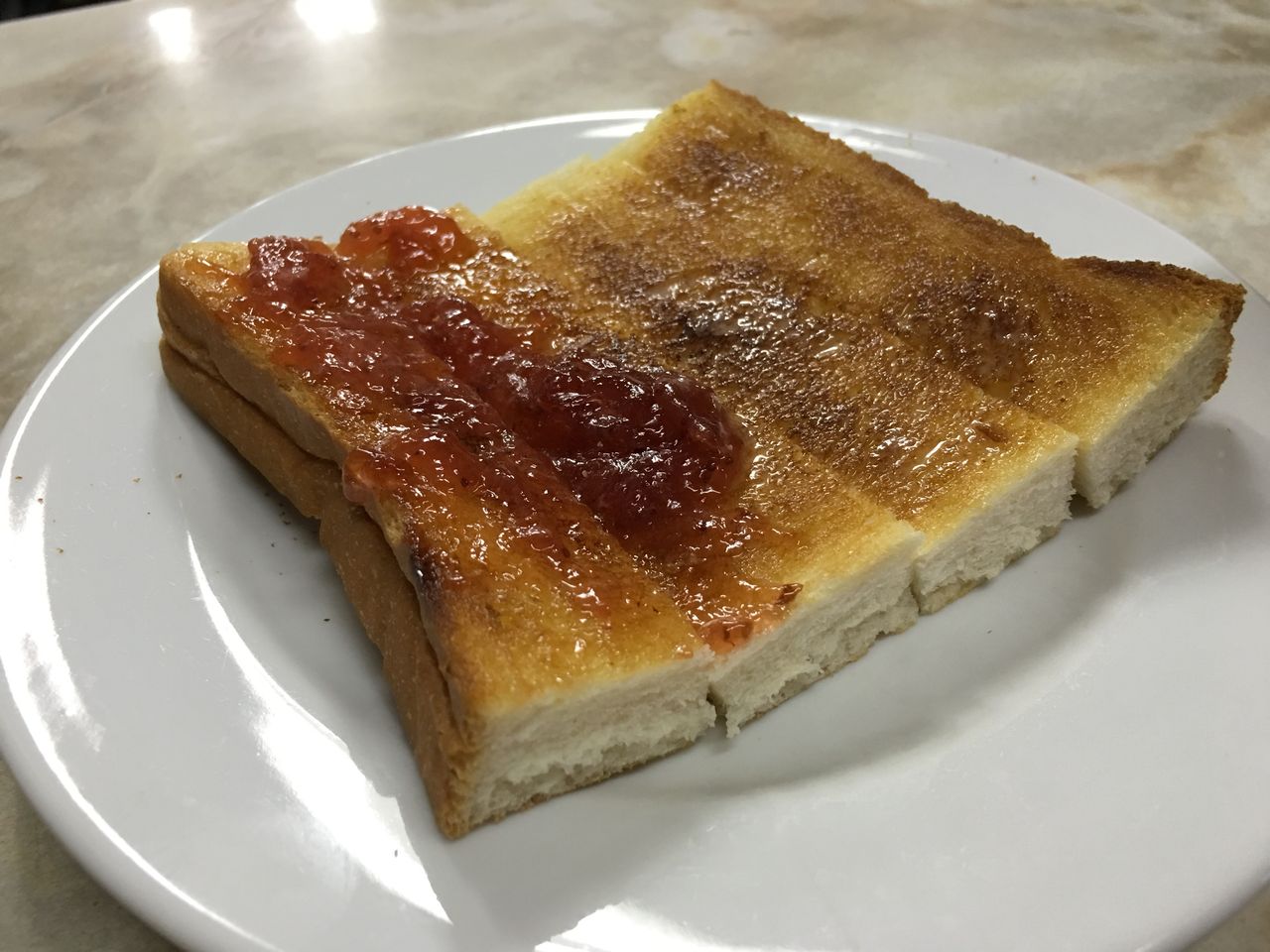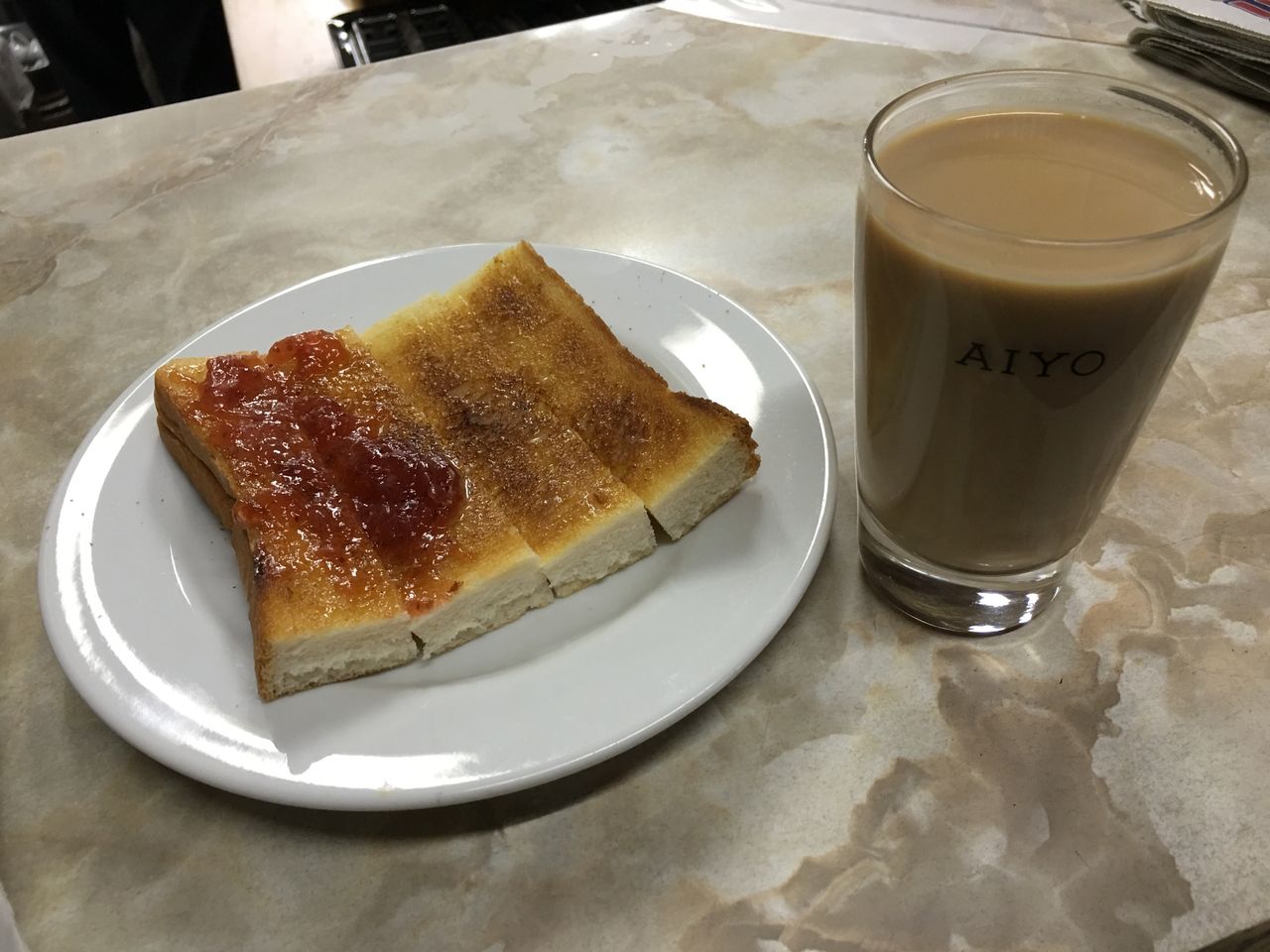 トースト(耳二つ落としジャムちょい乗せ)、ミルクコーヒー@愛養