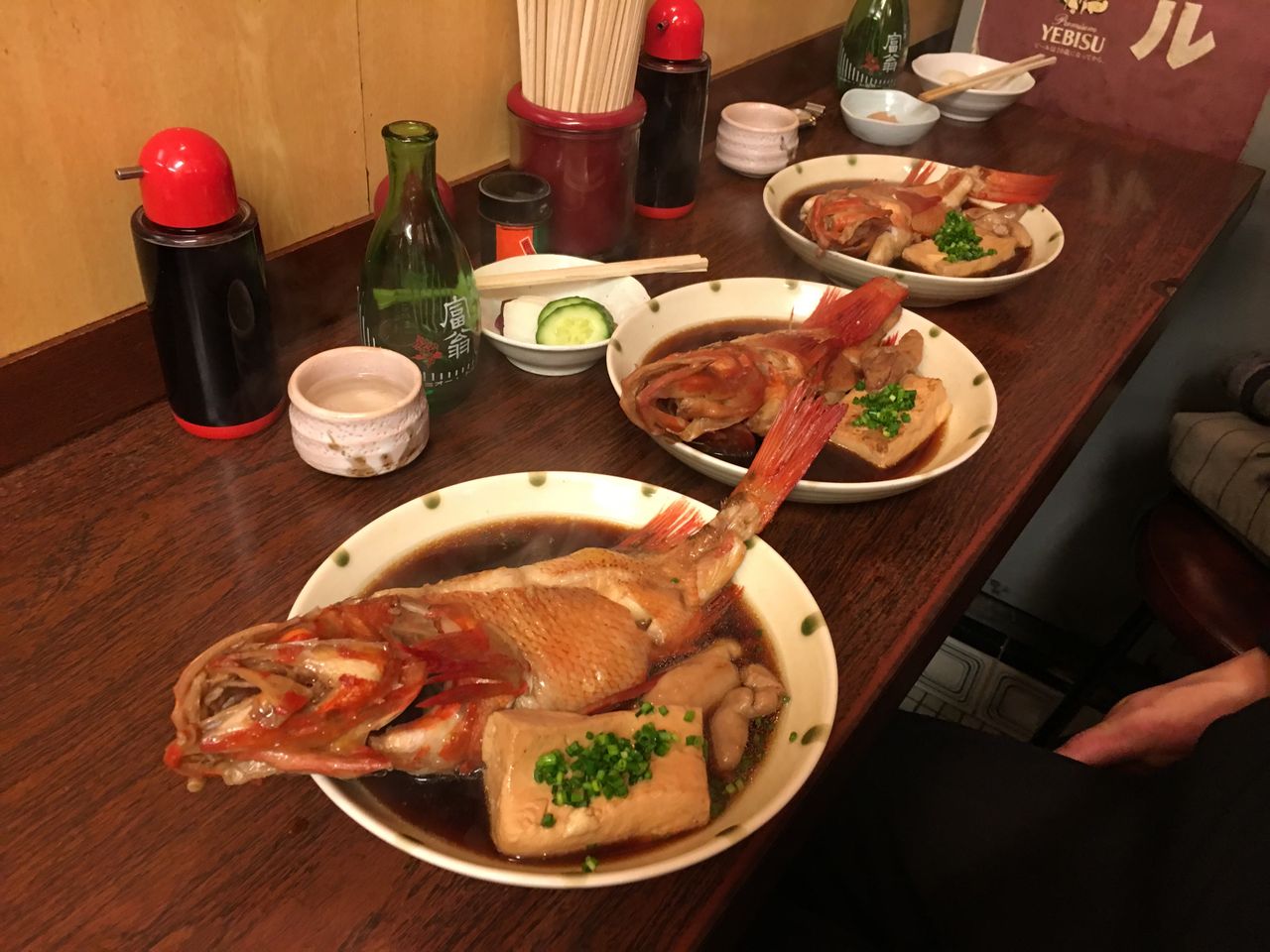 市場でつりキンキ煮付、白子、野菜煮@かとう(築地場内市場)