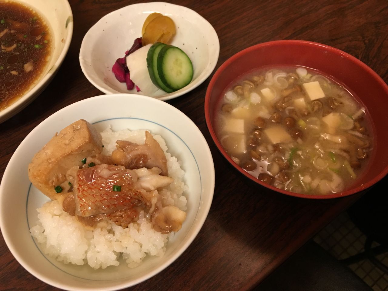 私あまりお酒の後はご飯を頂かないタイプですが、我慢できずにご飯と味噌汁をお願いし、煮汁をぶっかけていただきました。