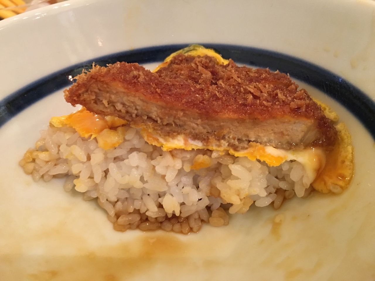 玉子焼きの上に汁にくぐらせたカツが乗ってるって感じですね。カツのサクッとした歯触りが印象的です。
