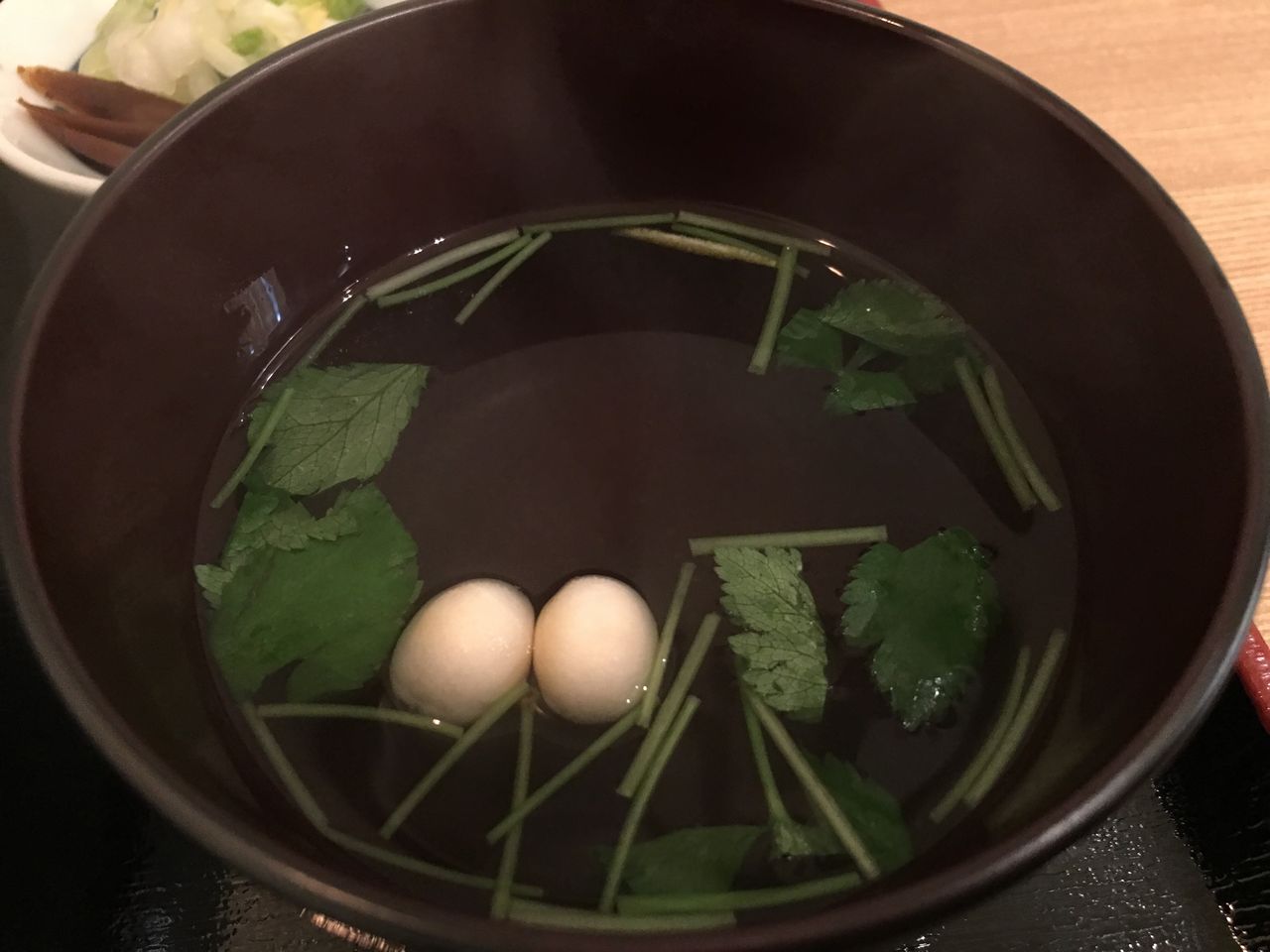 市場でお吸い物ってのもいいもんですね。三つ葉の香りがまた高級感を醸し出します。