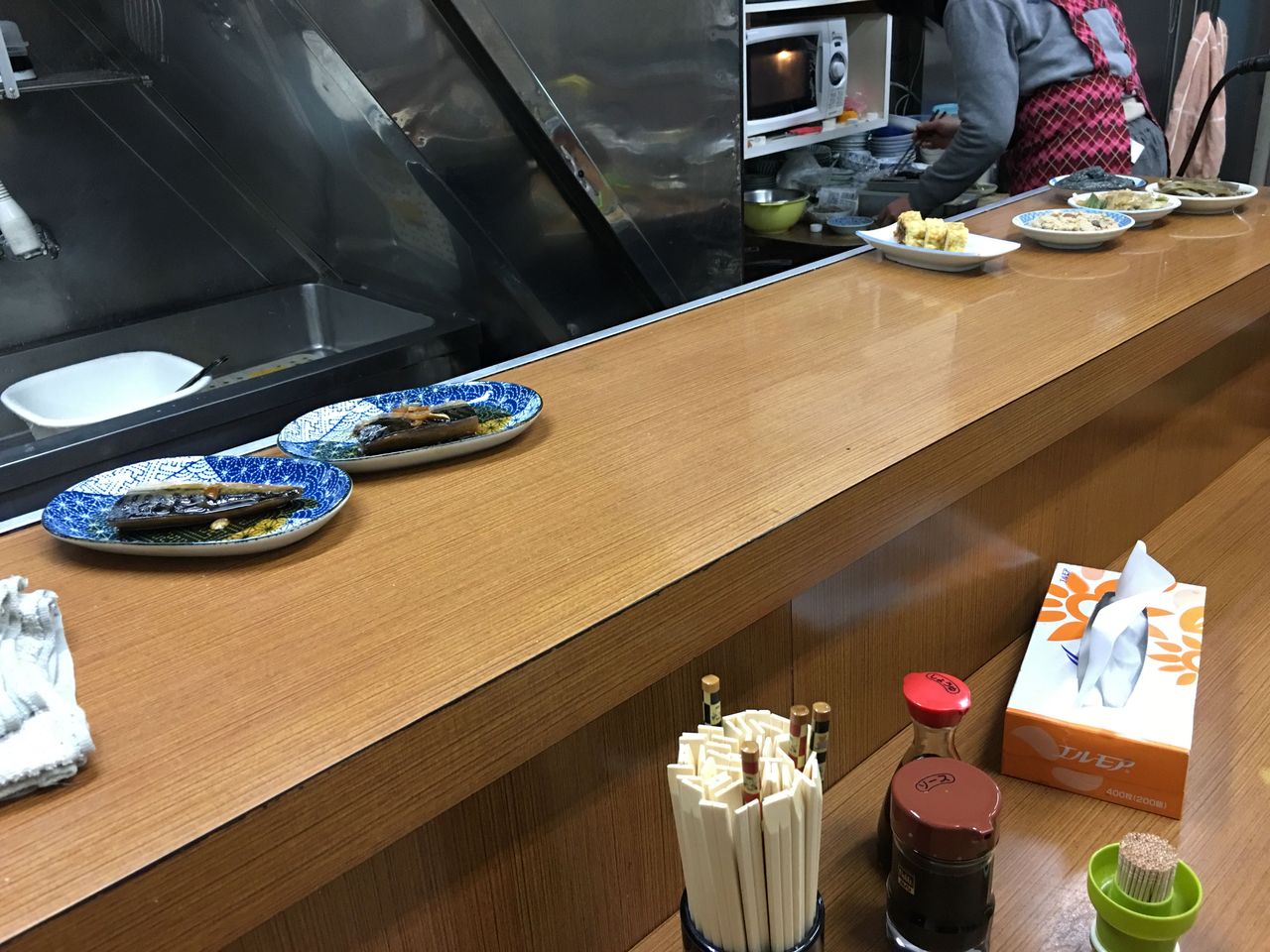 常連さん方に頭を下げて、カウンターに着きます。