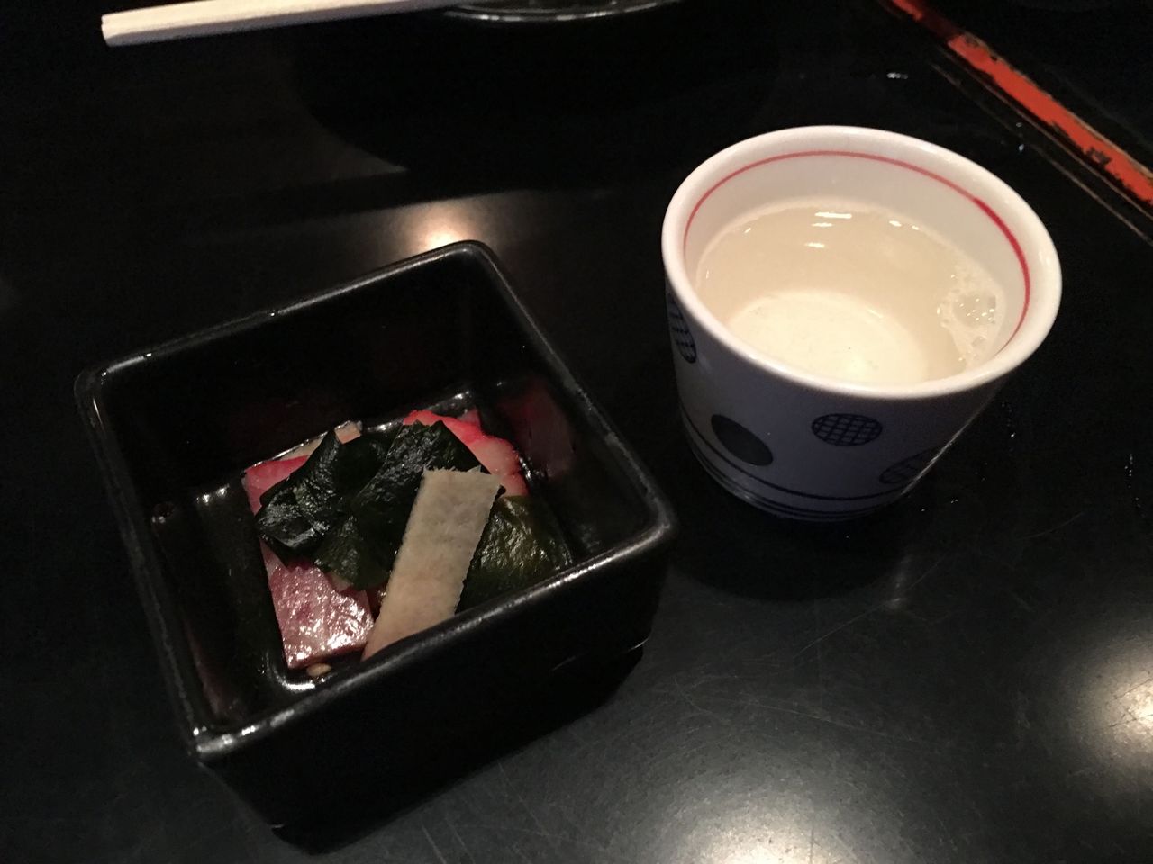 突き出しはクジラベーコンのお浸し。