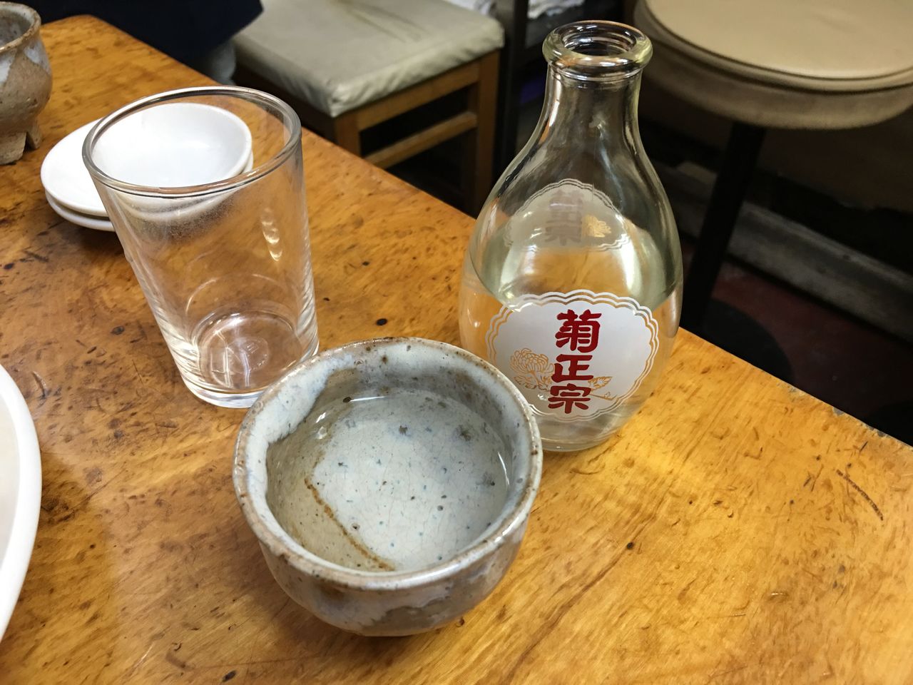 ビール用のグラスに熱燗用のおちょこが各自配膳されます。