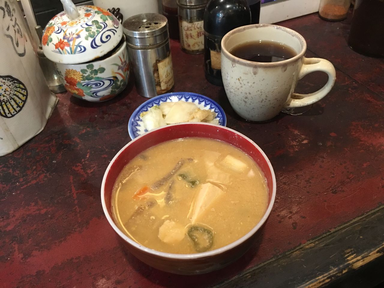 そんな話をしているとお茶とお新香、お味噌汁が並びます。