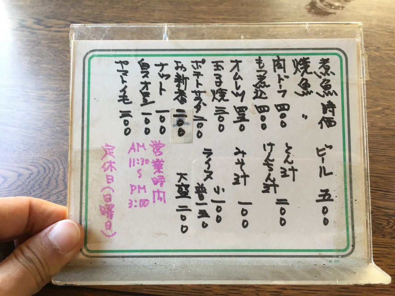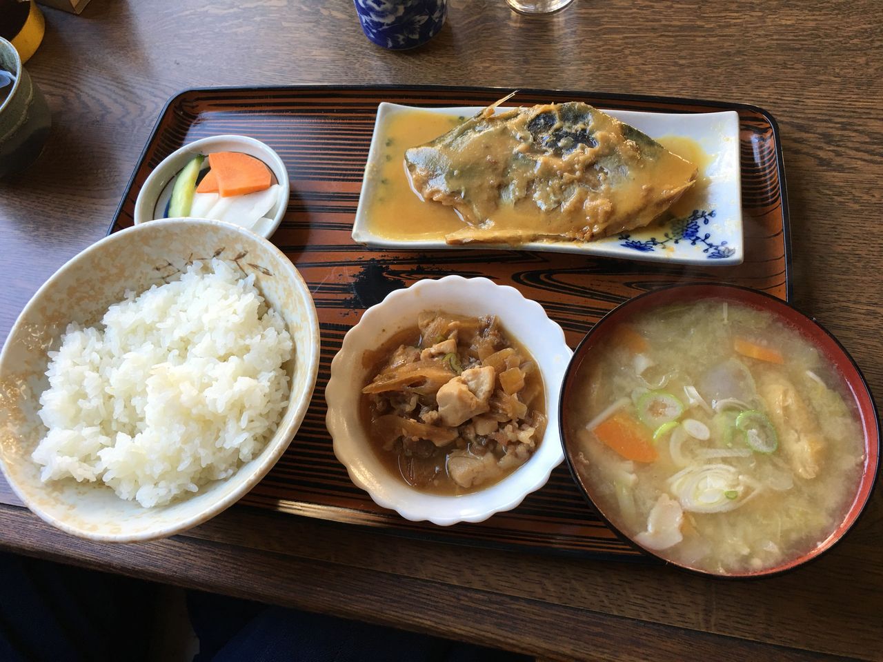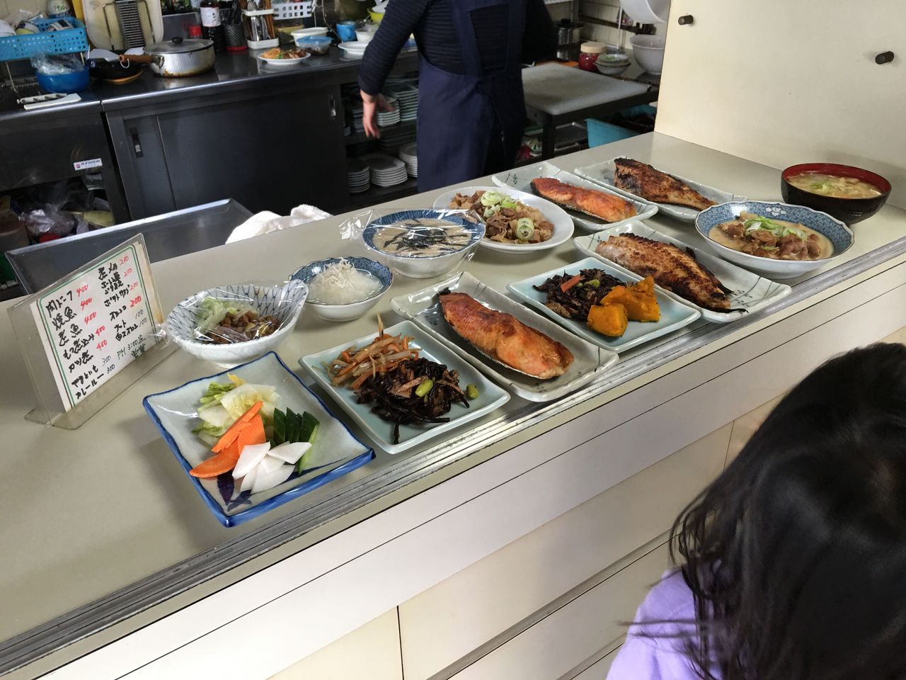 もっともメニューを見ることなく、暖簾をくぐればカウンターに並べられたお惣菜を選び、ご飯の量、味噌汁か豚汁か選び席に着けば、妙齢のお姉さんが温めなおして持ってきてくれる。