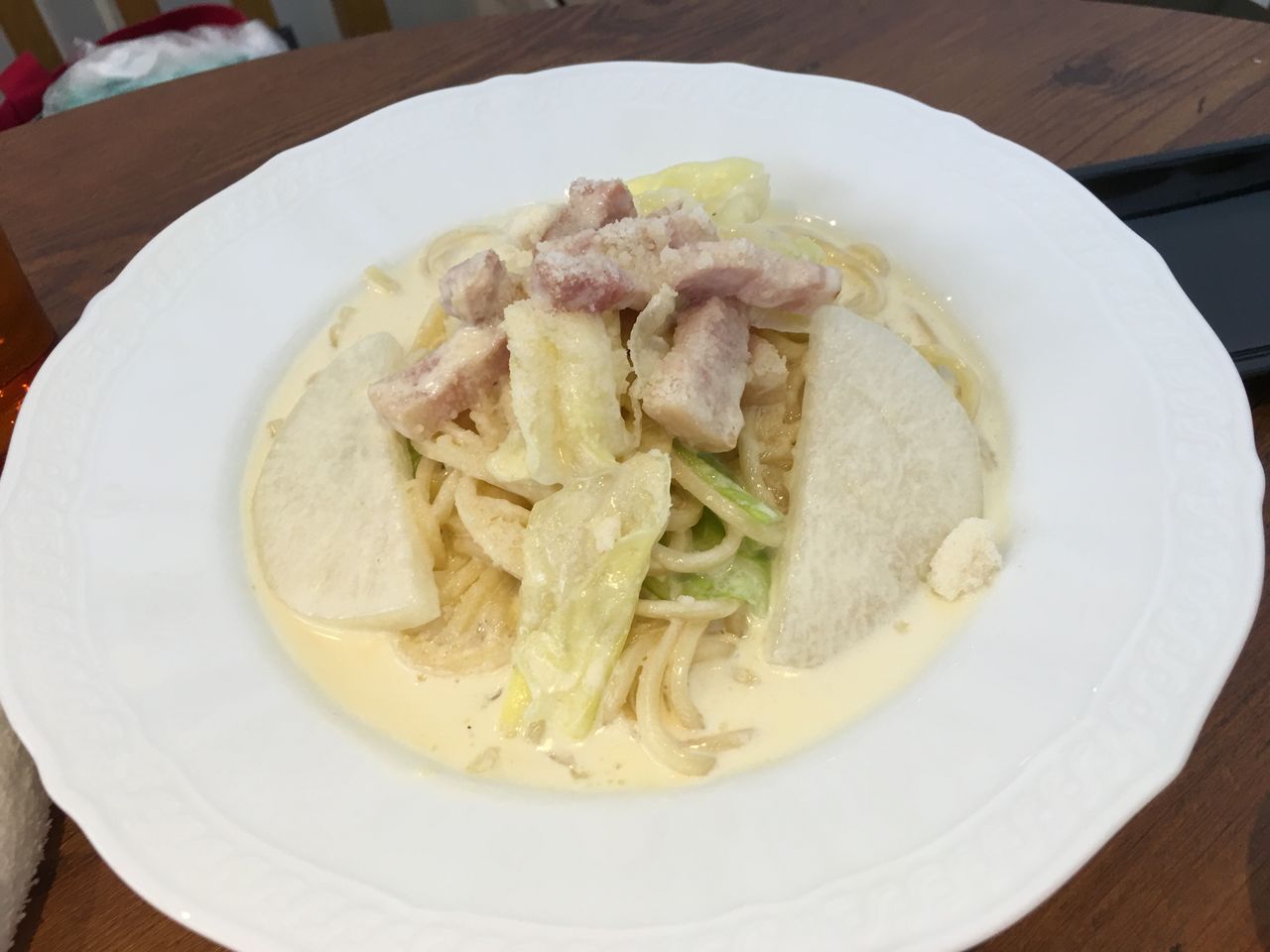 大根の食感はしゃっきり、軽い苦みがクリームソースに清涼感を与えます。