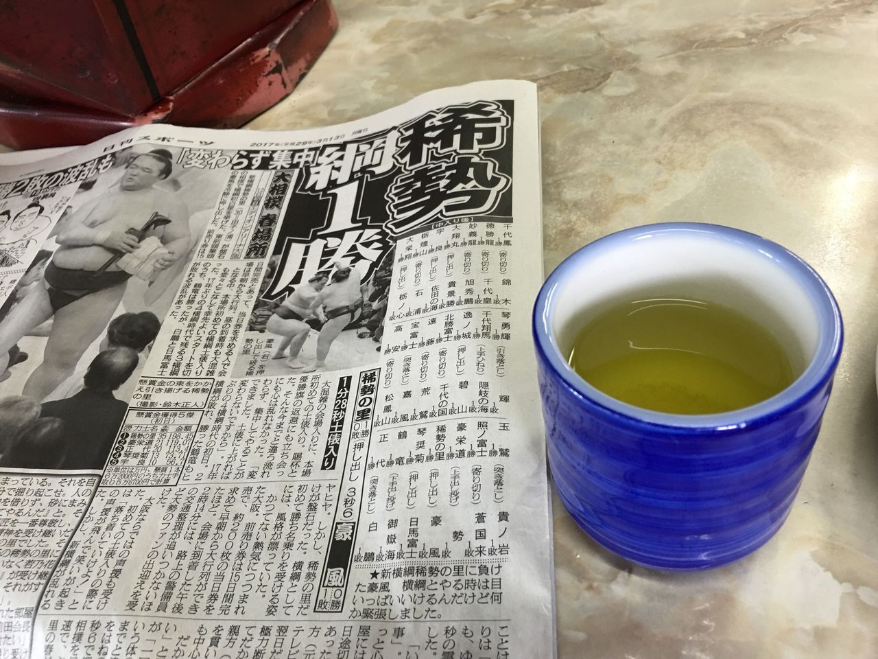 平日の市場で朝酒を嗜み、ゆっくりとスポーツ新聞なんぞ読みながらコーヒー、あがりにお茶まで出してもらう。なんて贅沢な休日なんでしょうね。ホント幸せです。