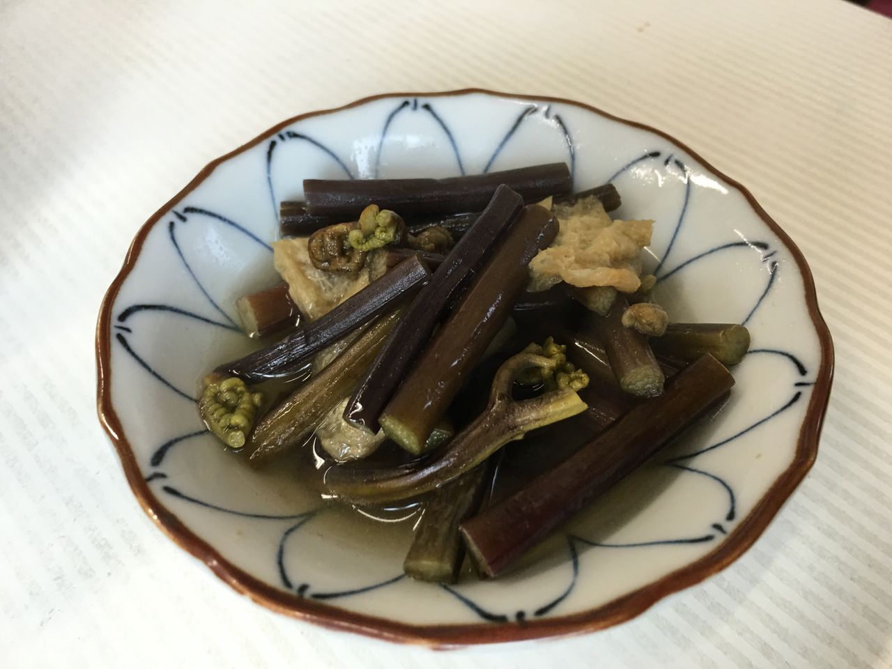 お姉さんが良かったらどうぞと出してくれた蕨の煮付け。