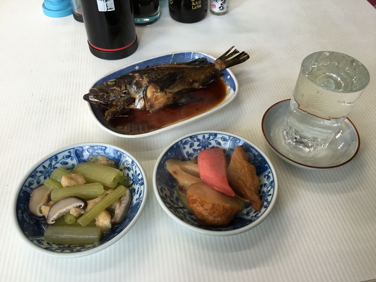 市場でメバル煮付け、ハンペイ煮物、フキ煮物@魚源食堂(愛知県名古屋市中村区名駅、柳橋中央市場)