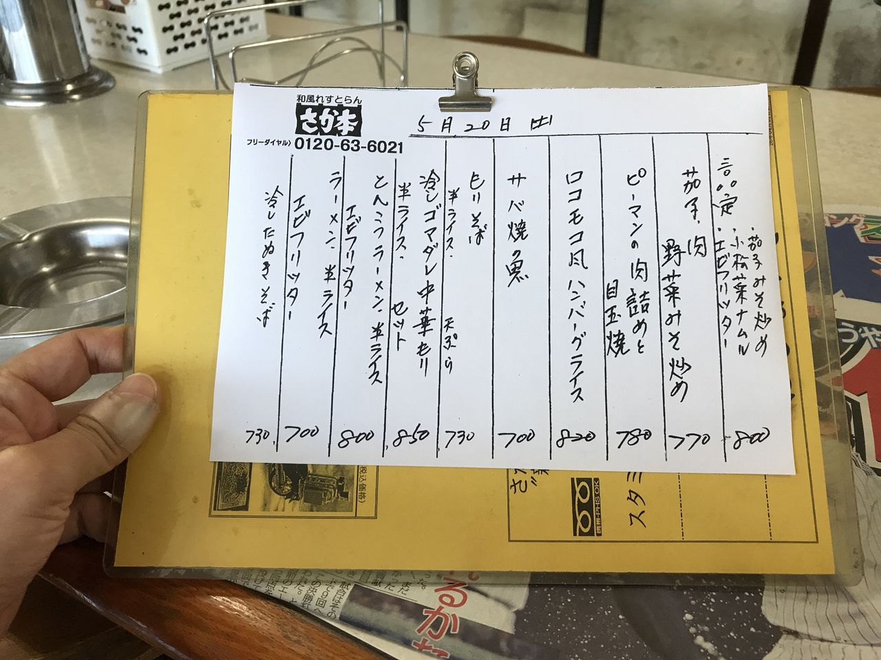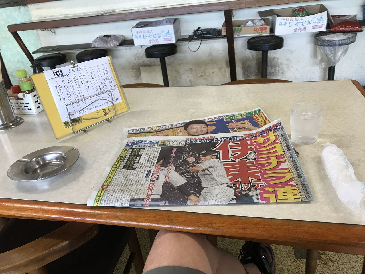 スポーツ新聞を独り占めし、落ち着いたところで本日のメニューを見ます。