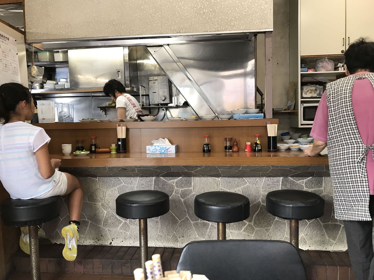 ちょうど出てきたお姉さんにお袋を紹介し、カウンターを覗きます。