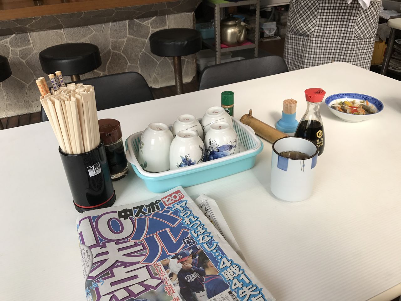 平静を装うためにスポーツ新聞などをチラ見し、お刺身を訪ねる。