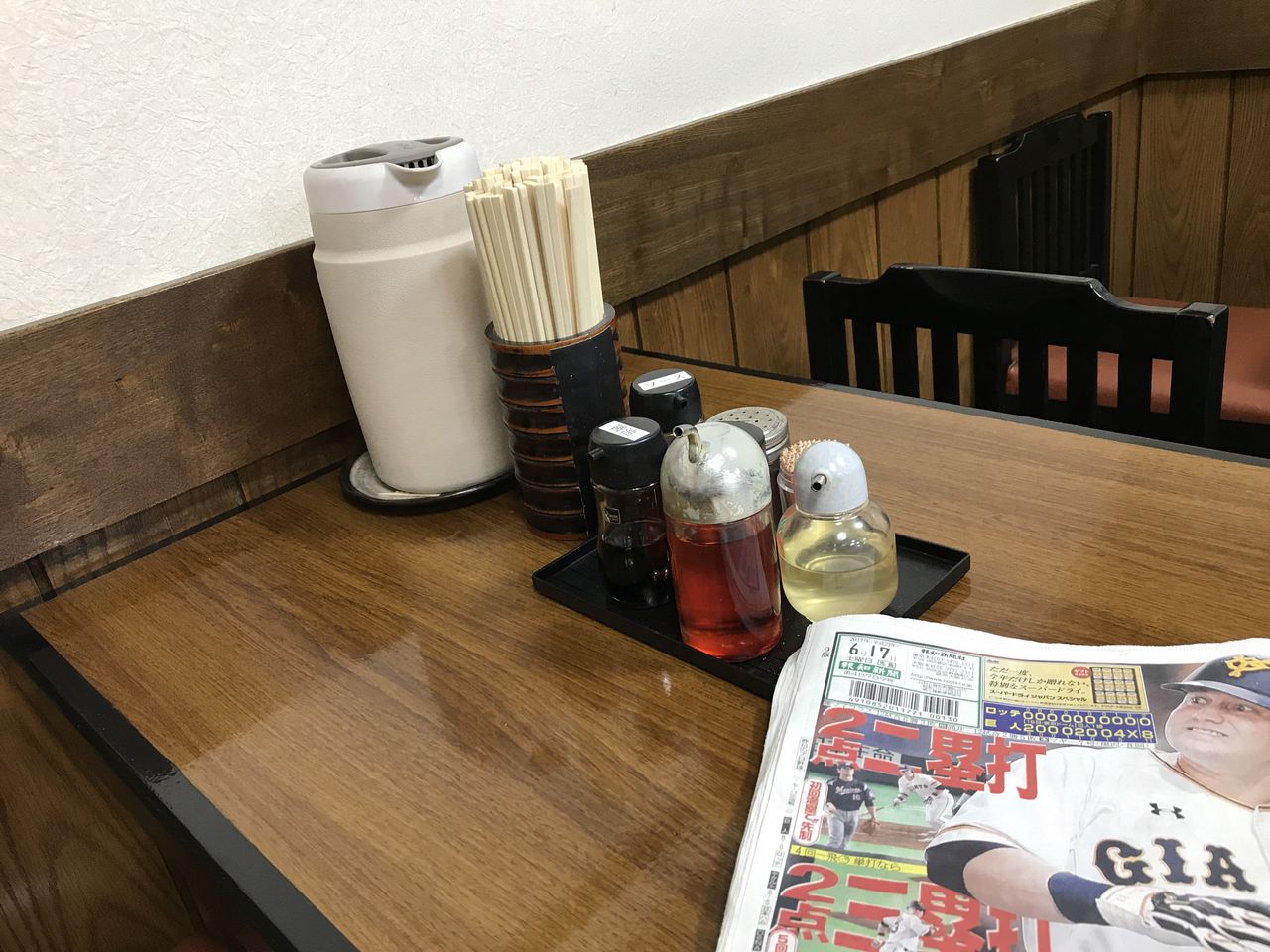 注文を済ませ、スポーツ新聞などチラ見します。