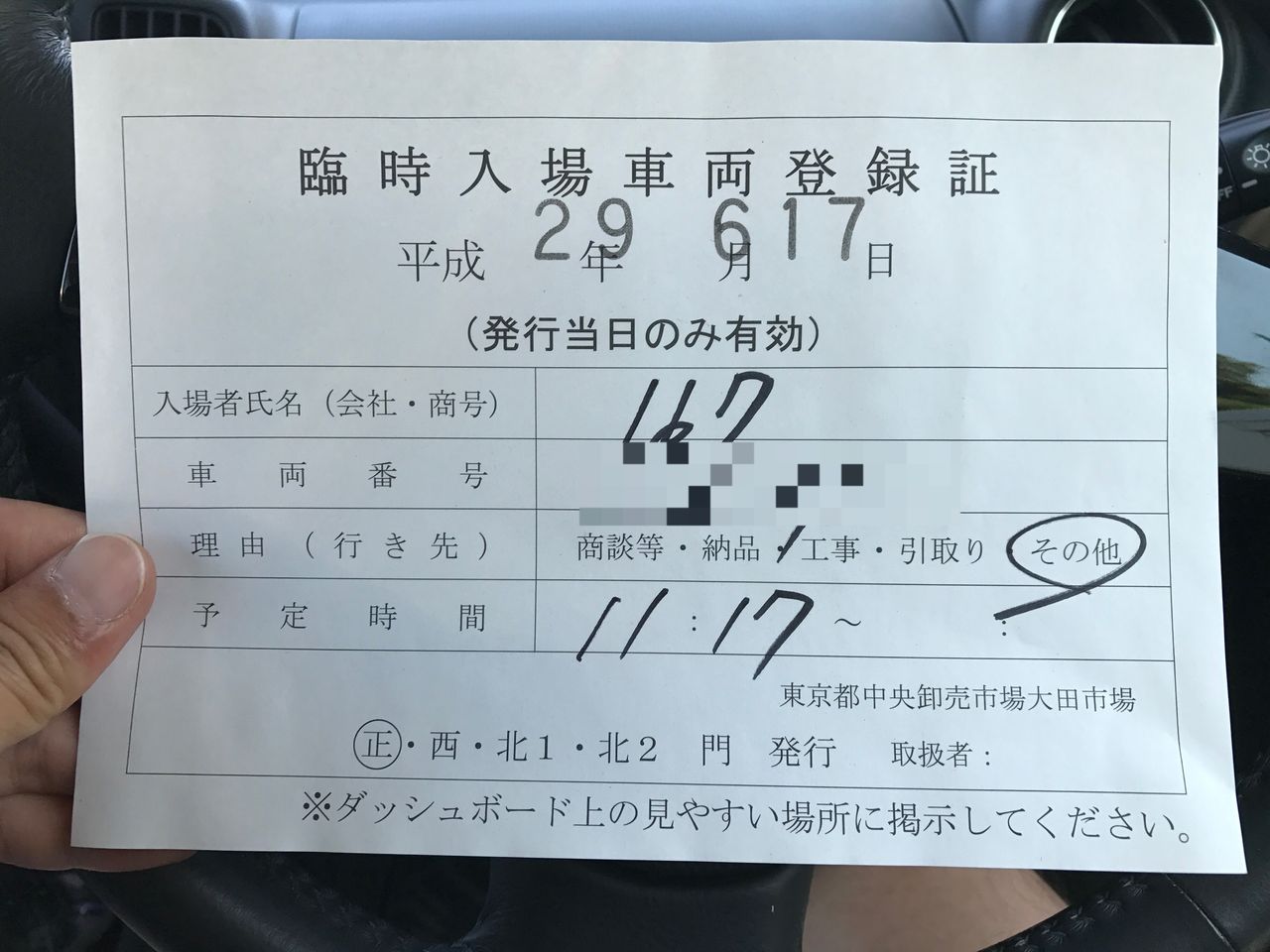 正門で受付を済ませると、駐車券がもらえます。