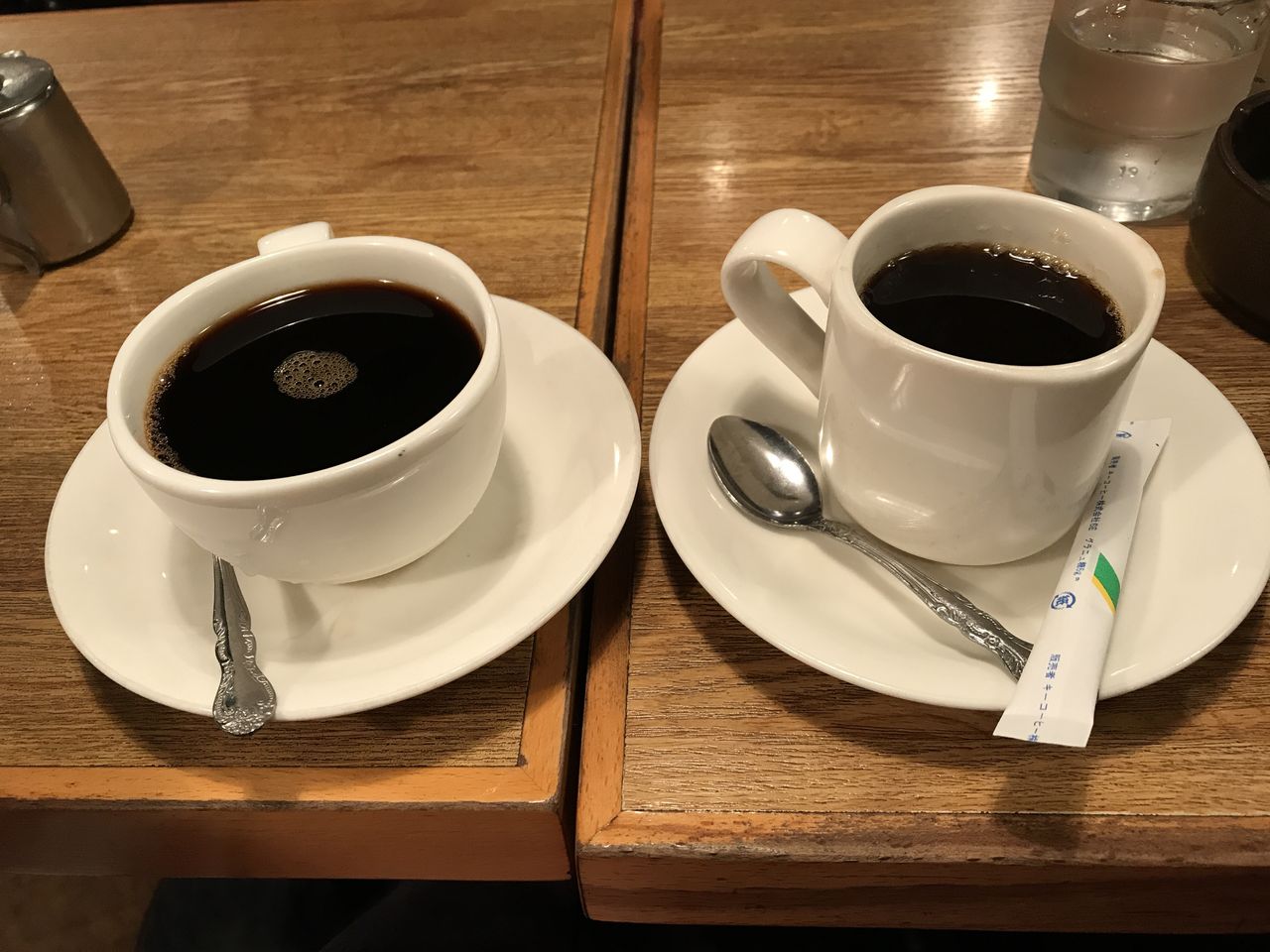 左が紅茶で右がコーヒー。