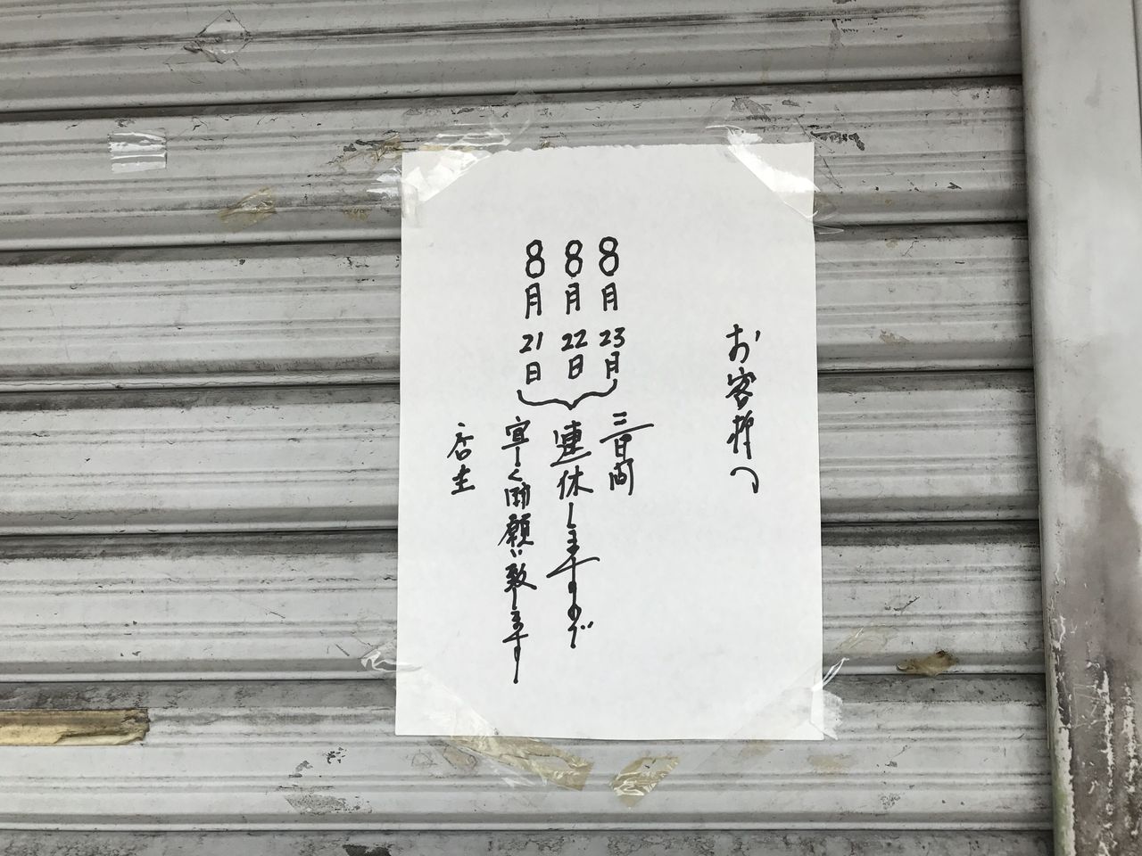 啜ろうかなって伺ったんですが、連休中。
