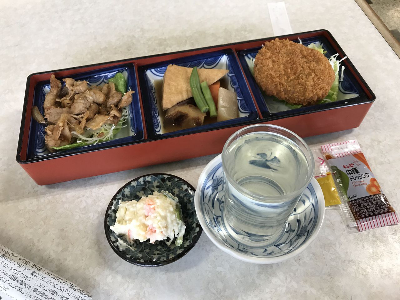 熱燗を一口ポテトサラダを一口含んだころにはやってくるさか本三品定食のおかず。
