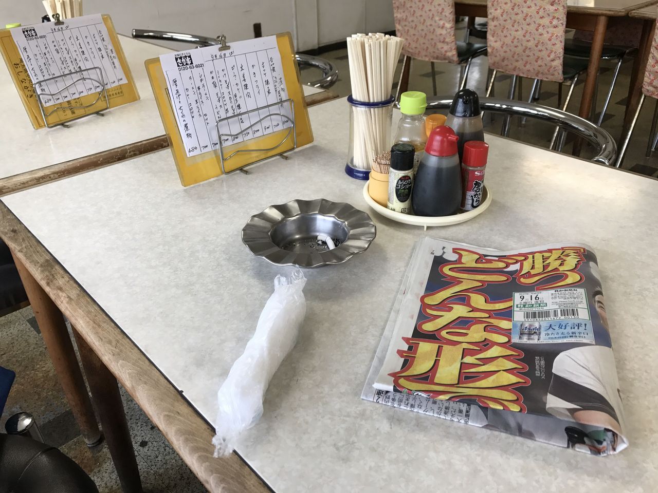 そんな感慨深い朝を癒してくれるスポーツ新聞に灰皿。