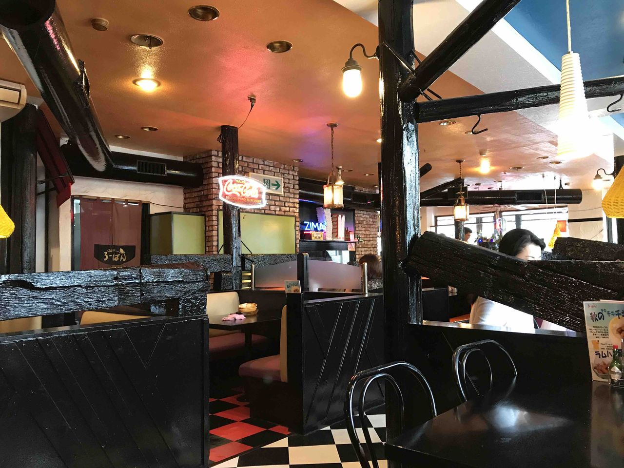 店内こんな感じ。古き良きアメリカにあこがれていた頃の日本があります。柳屋のポマードの香りを振りまいて、リーゼントのお兄ちゃんが入ってきそうだ。カルコークやペパーミント、クリームソーダを奥さんに説明しても切ない話だ。