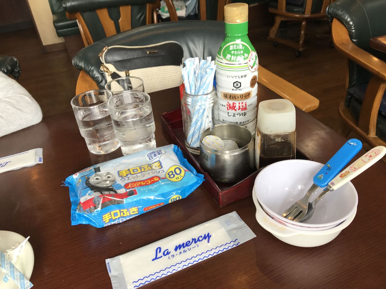 子供用に取り分け用のお椀、さらにウエットティッシュまで出してくれました。
