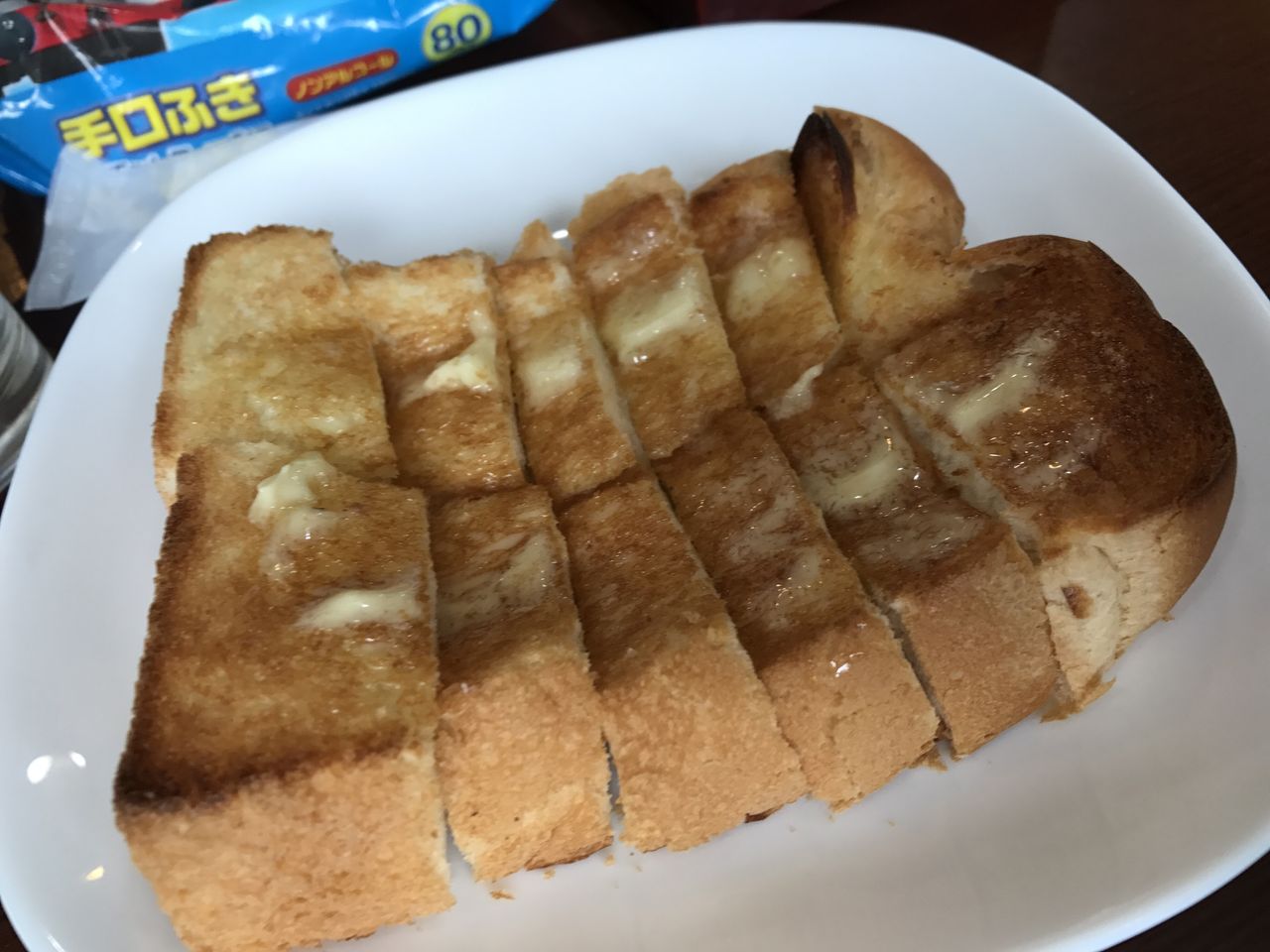 コーヒーにはつまみが無いといまいち進まない愛知県みんな奥さんのためにトーストをあつらえました。