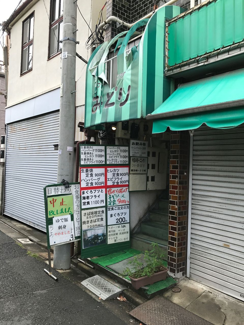 千住の魚河岸、足立市場で食事を済ませ、コーヒーでもとカフェ食堂みどりさんに向かいます。