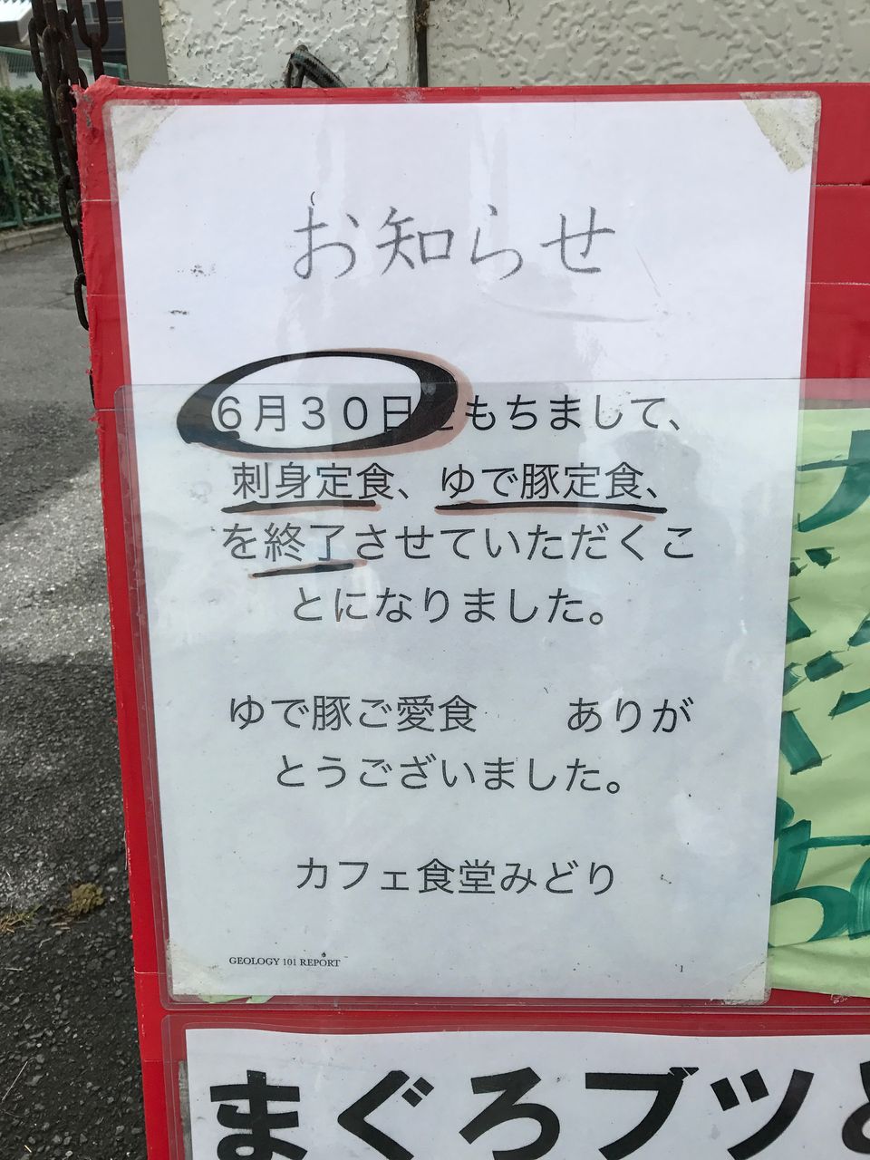 日替わりランチは中止、ゆで豚やめました…。