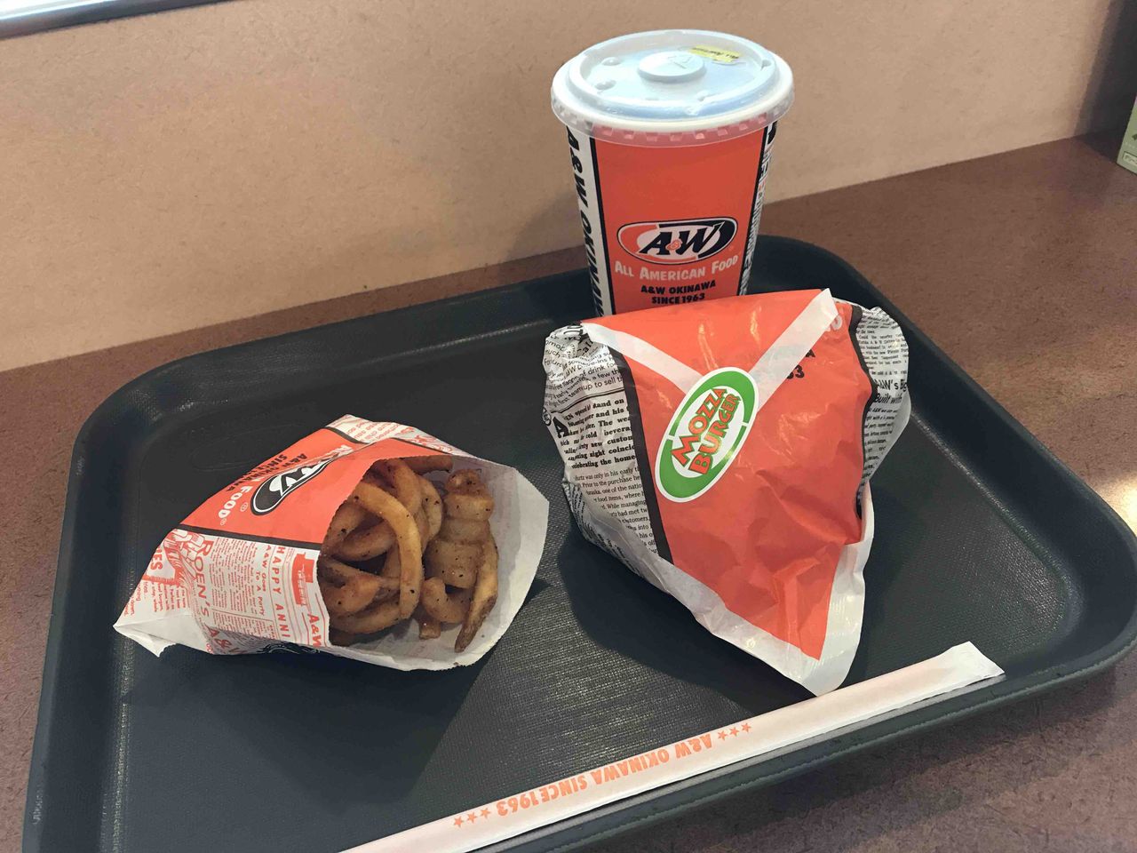 A&Wレストラン屋宜原店が日本初上陸のお店らしい。ちなみに”やぎばる”ってようむようである。