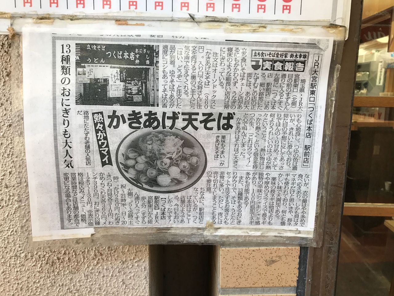 本日は埼玉県さいたま市大宮区大門町にあるつくば本店さんにお邪魔しました。埼玉県大宮駅東口を出るとすぐ見えるすずらん通りのアーケード。つくば本店さんはすずらん通りの関所のような位置にあります。地の利もあるんでしょうが、入れ替わり立ち代りお客さんの入る人気店だ。この看板だけで老舗ってわかりますね。メニューは立ち食い蕎麦のベ...