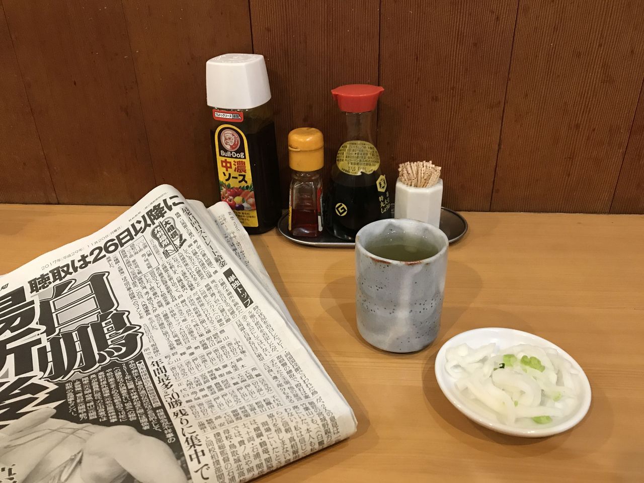着席すると出てくるお茶に、お茶請けの漬物。