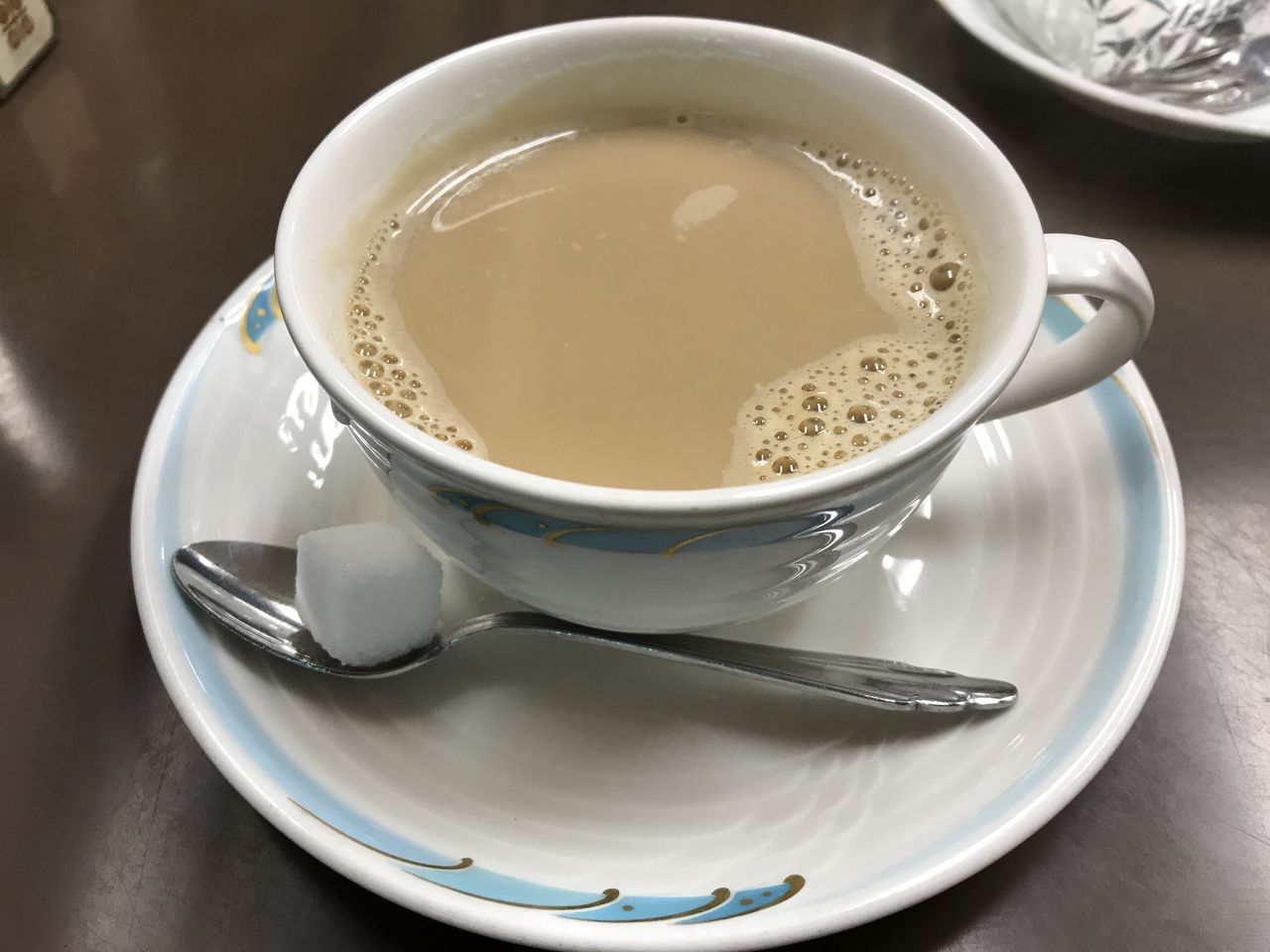 とりあえずミルクコーヒー。角砂糖が相変わらずうれしい。