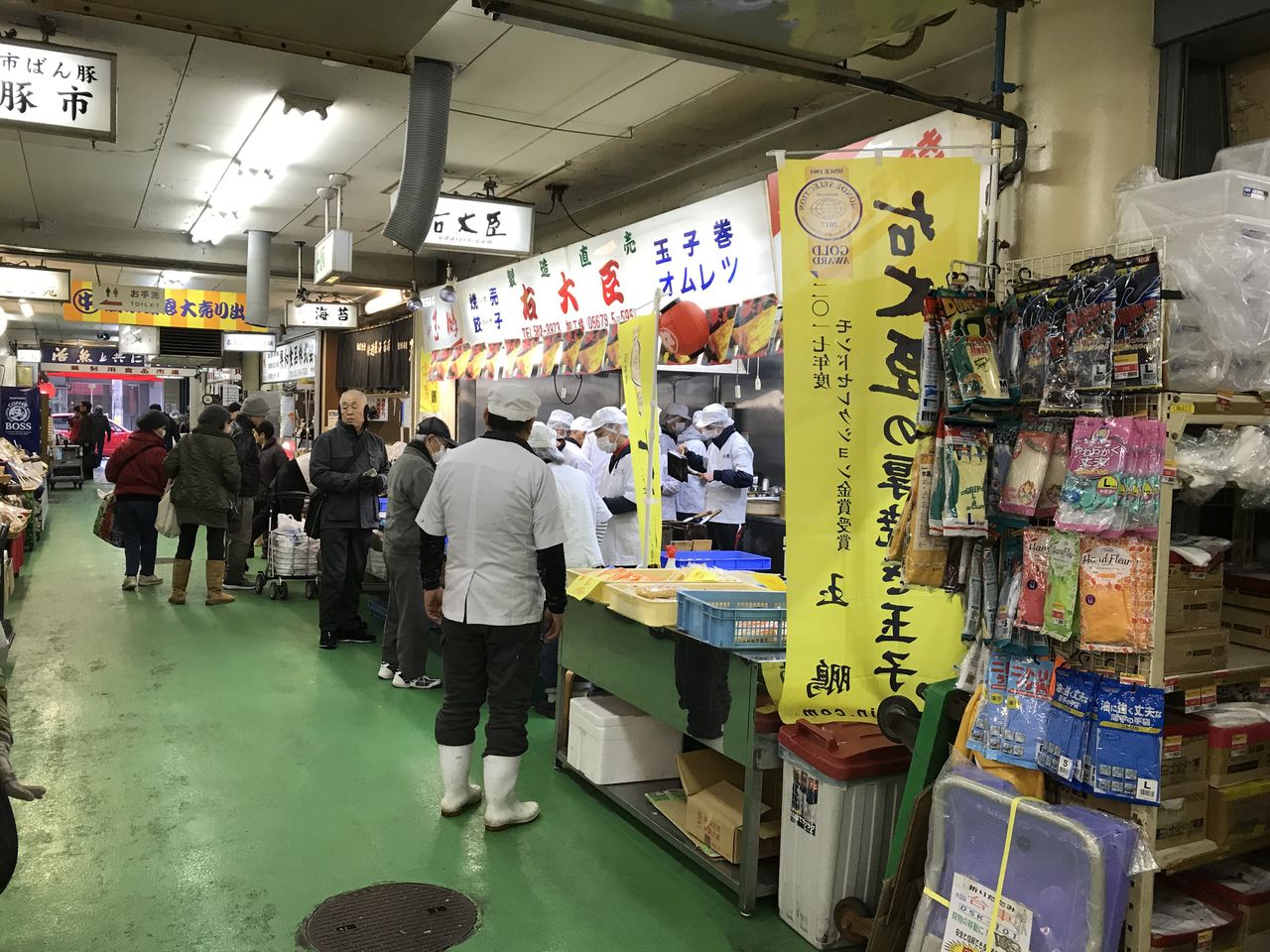 寒い魚市場であっつあつの温度のご馳走。