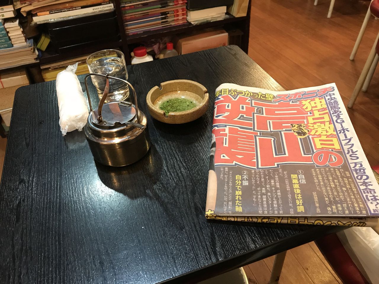 今日の市場の状況、お店の話で盛り上がったり、スポーツ新聞を眺めたり、昼寝をしたり。