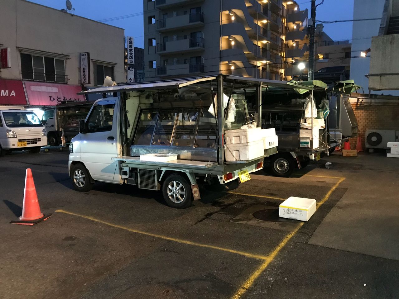 とりあえず駐車場に併設されている喫煙所に行ってみると本職の方々が荷物を積み込んでいます。