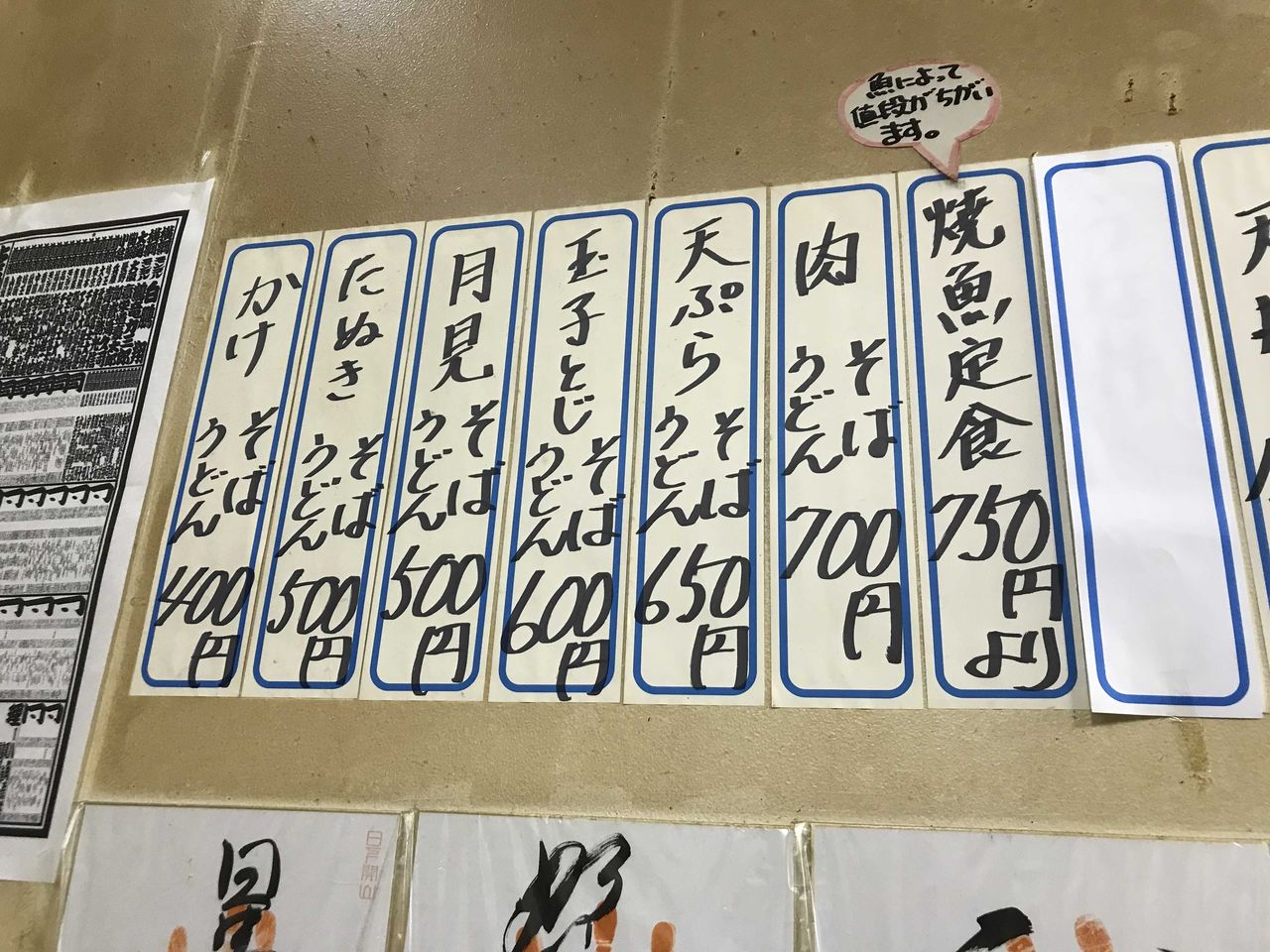 ハの時のカウンターの調理場側には値段が違う焼き魚がショーケースに鎮座しておりました。