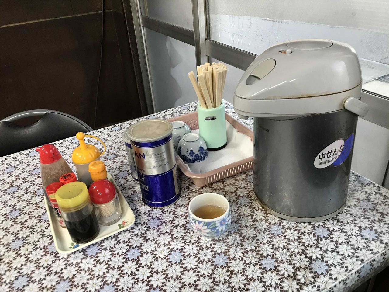 お茶と水はセルフサービス。