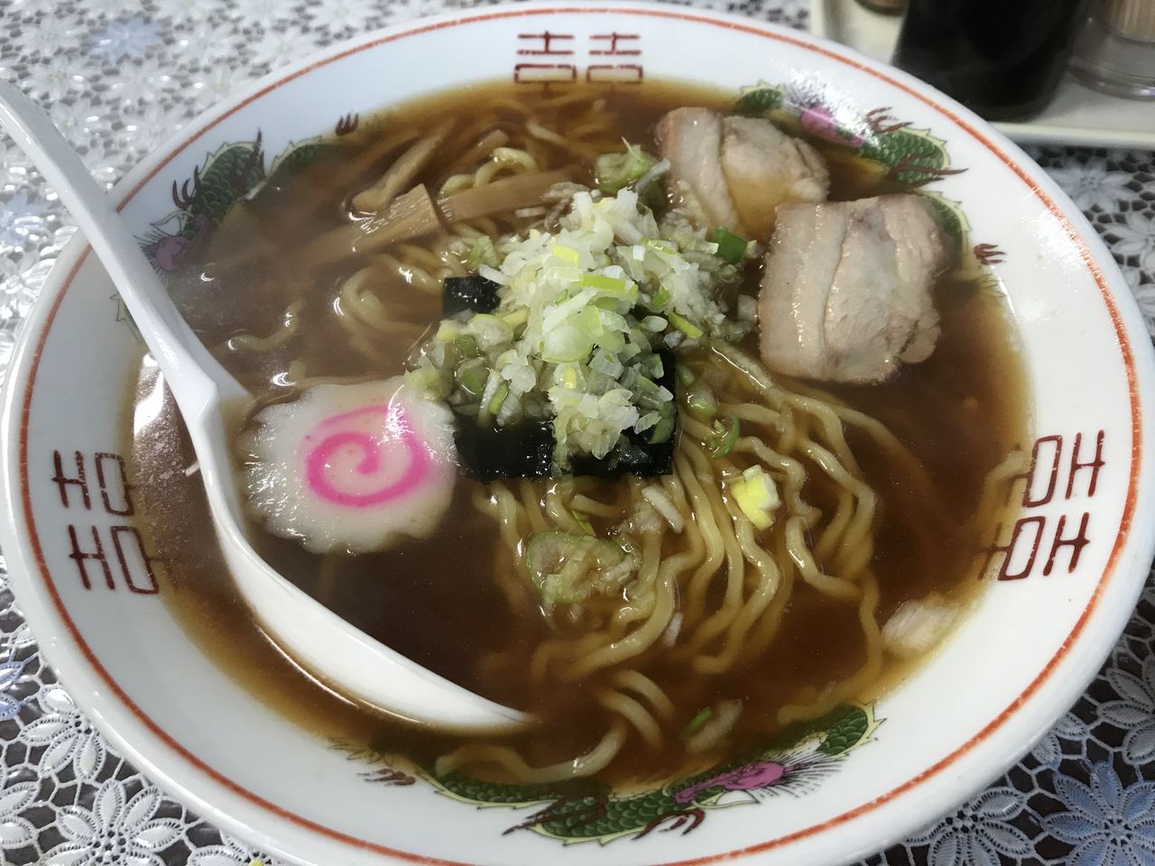 ナルトにシナチク、チャーシューに海苔。刻み葱がたくさん。