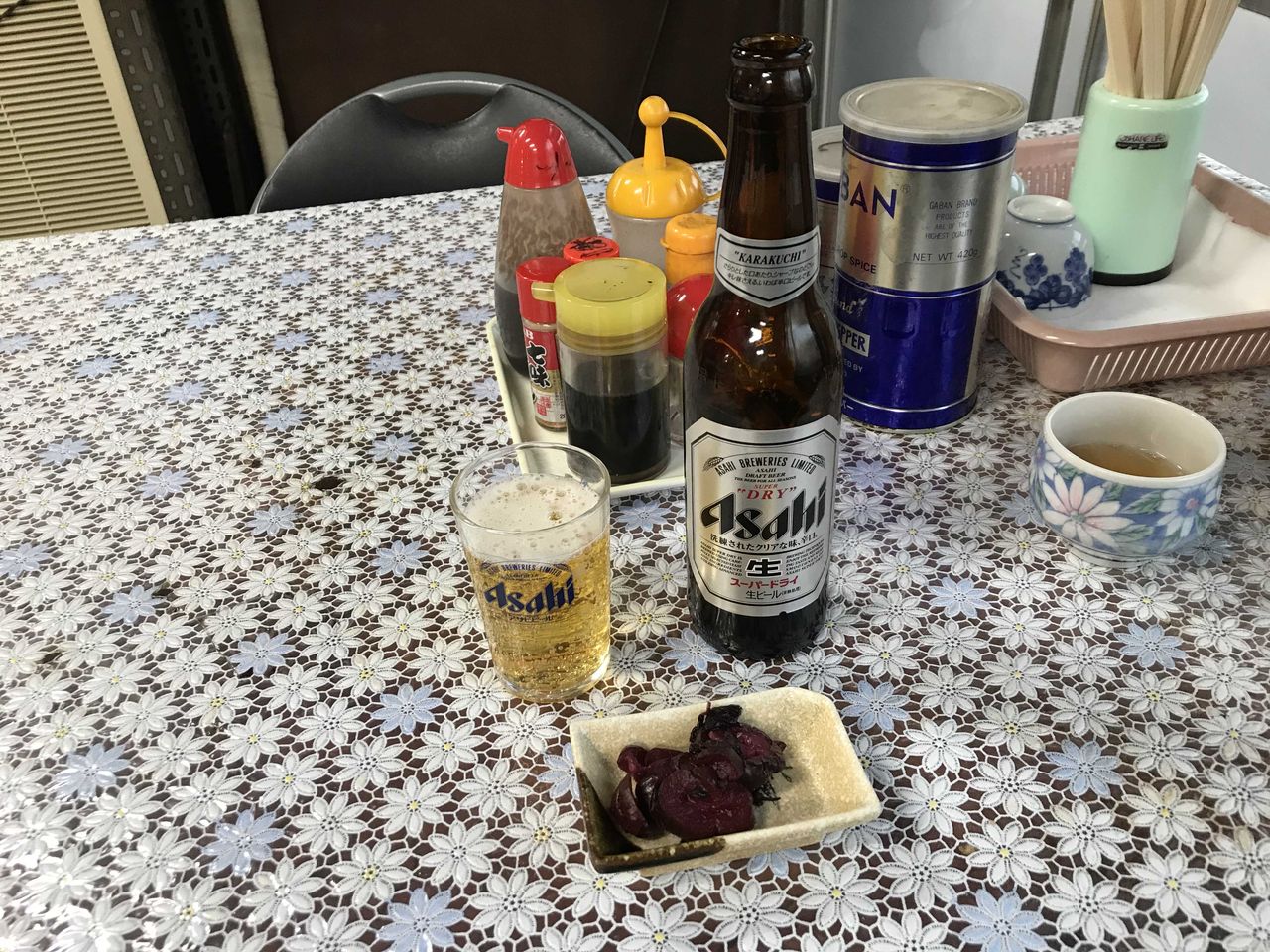 厨房に声をかけ、とりあえず小っちゃいビール。