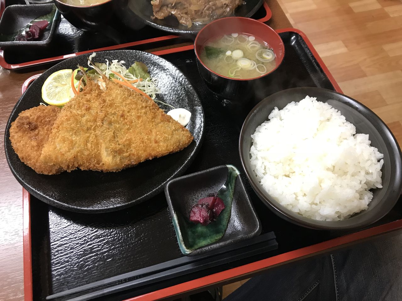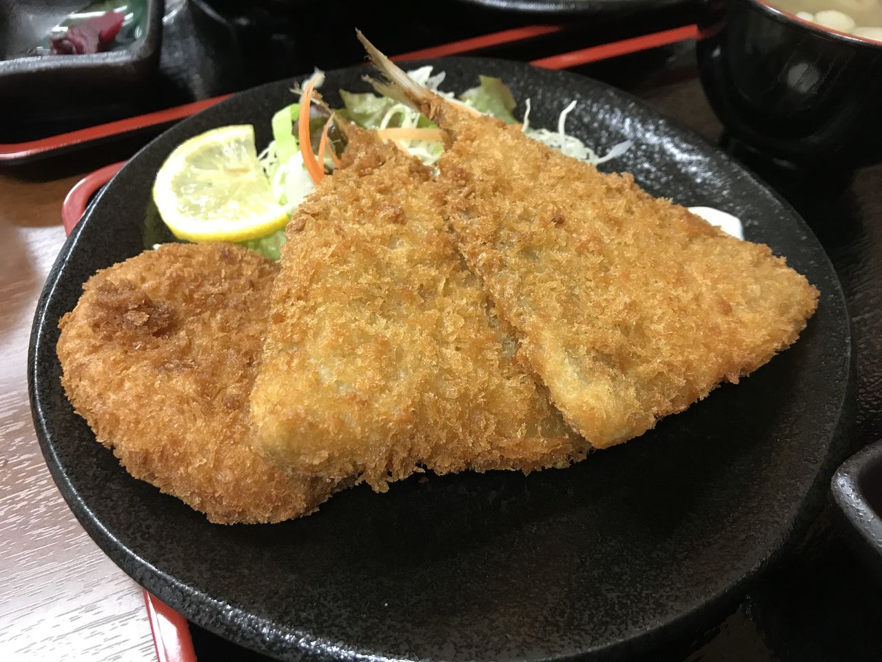 ザ・昭和の労働者飯って感じの定食を6歳児と1歳児ががっつり食べておりました。ちなみに1歳児は衣を剥がしてアジだけ黙々と食べております。