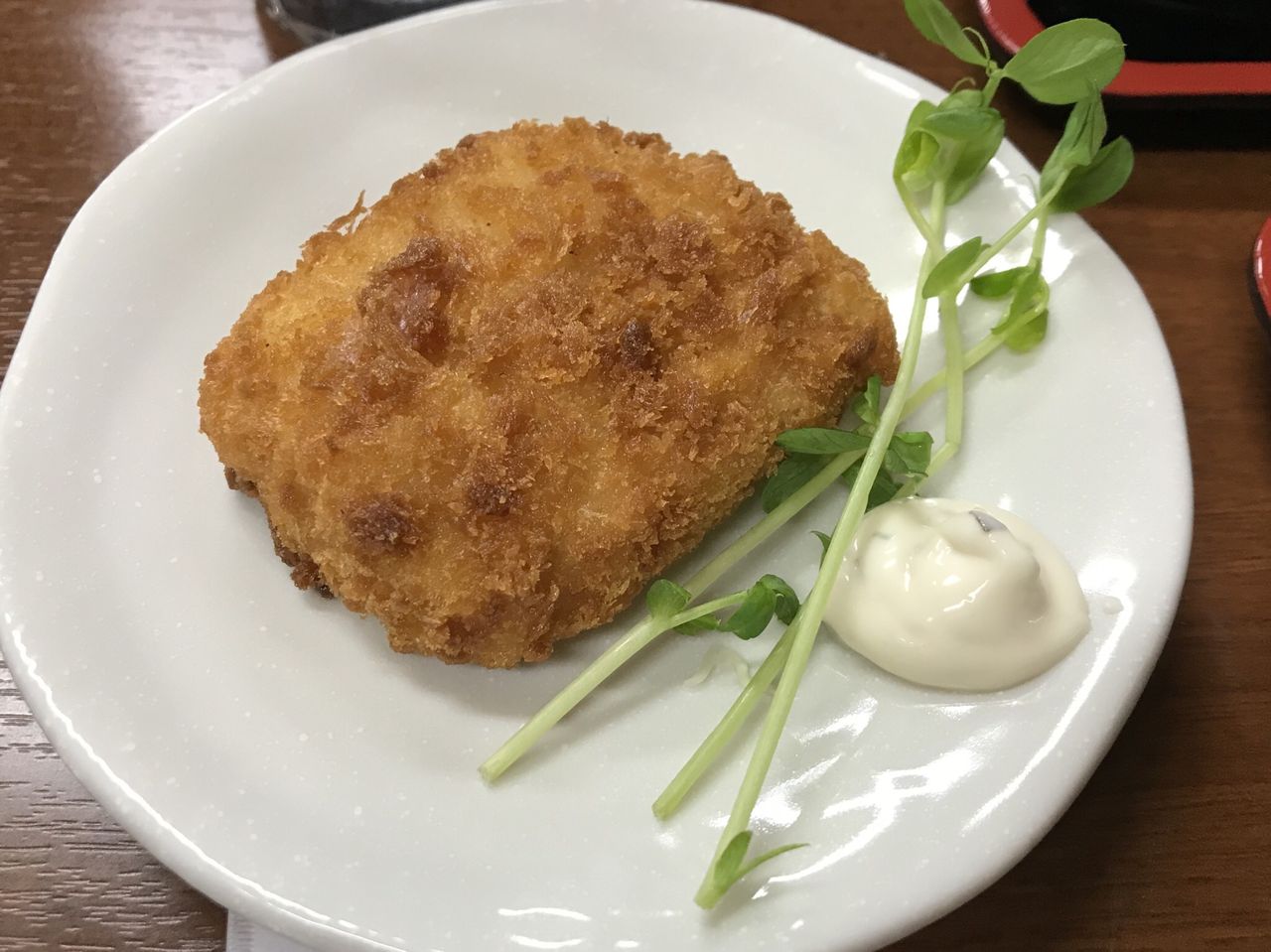 アジ・コロ定食をお願いしたのですが、無料サービスのラインナップを見てアジフライ定食に変更してもらいコロッケをトッピング。奥さんは生姜焼き定食に子供が欲したカルピスをサービスしてもらいました。
